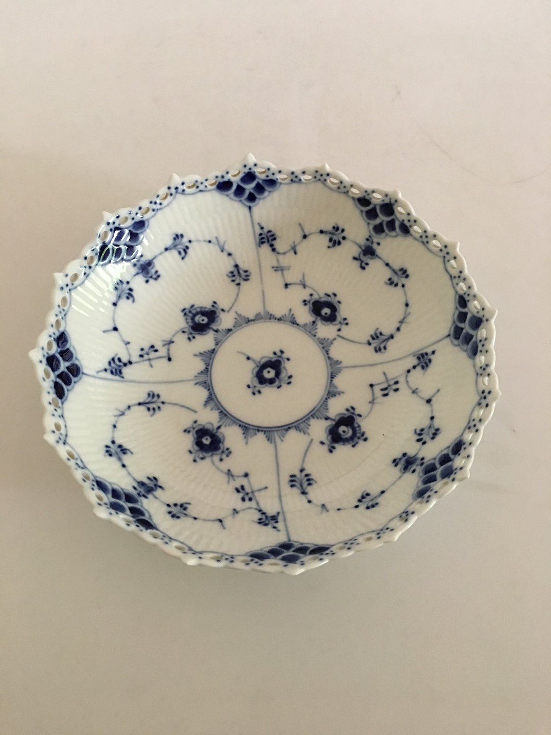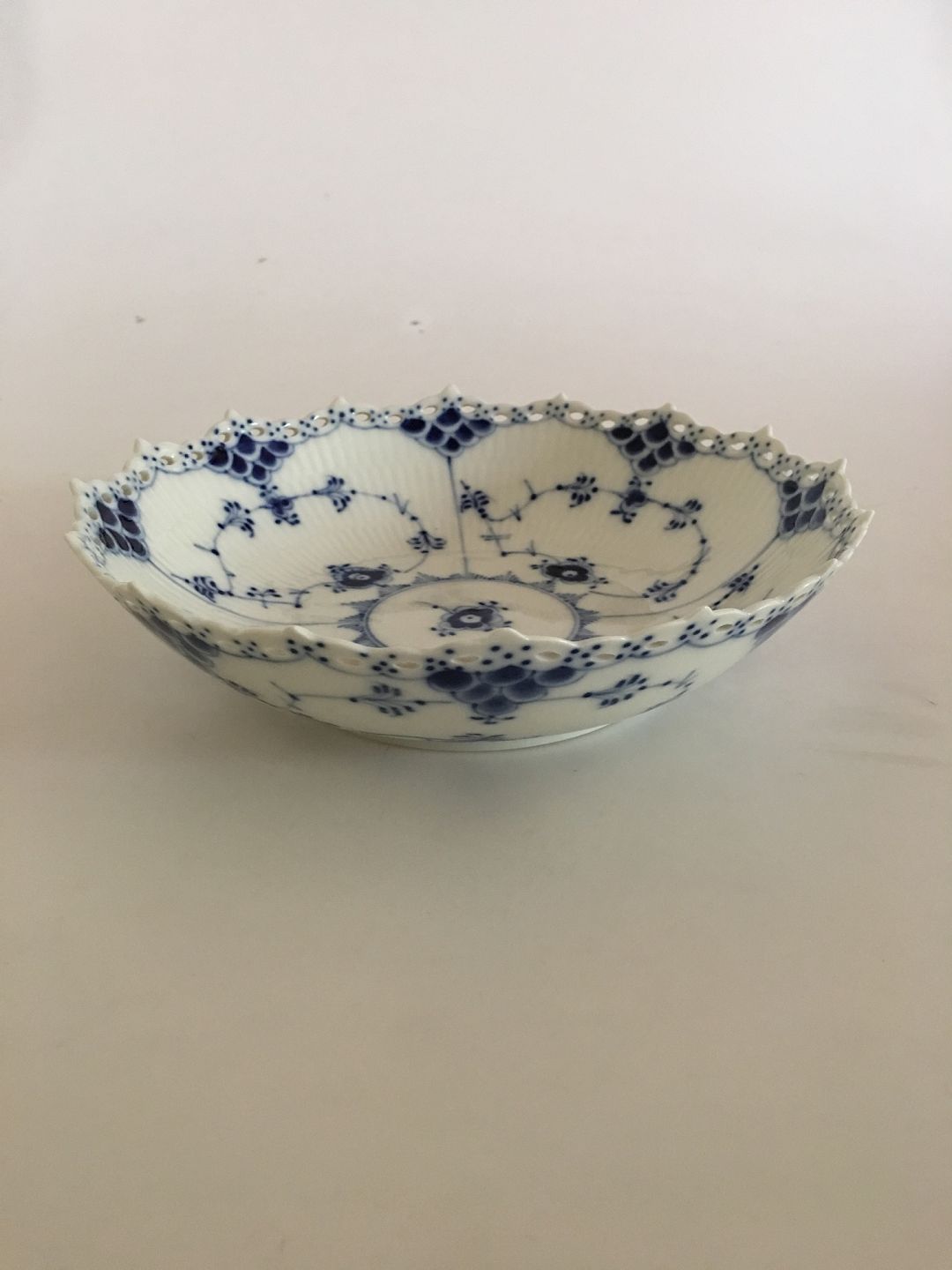 Royal Copenhagen Blue Fluted Full Lace Bowl No. 1018. 1st Quality but unfortunately has a small chip (look at picture). The bowl measurs 5.5 cm H. 20 cm dia.