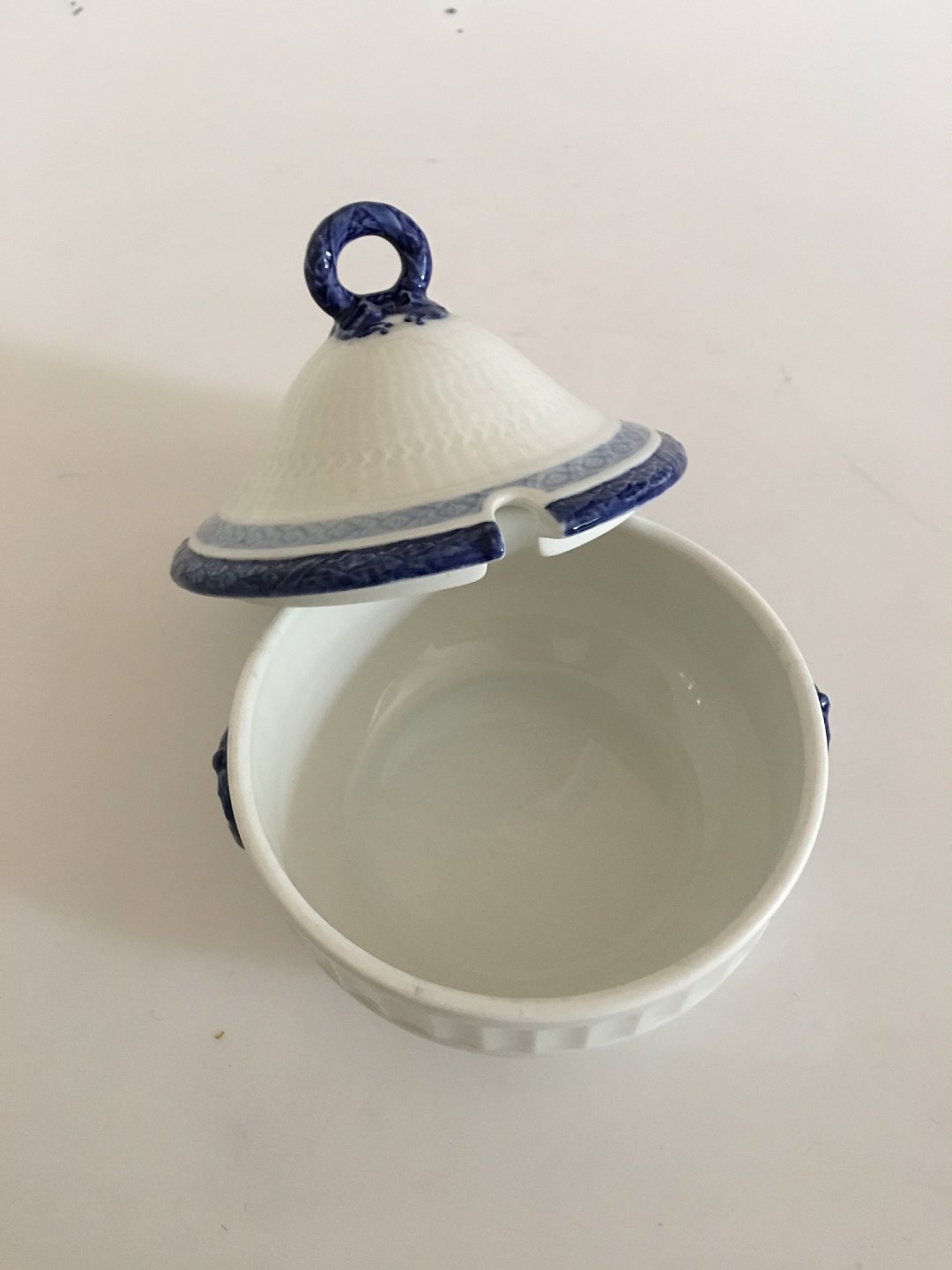 Royal Copenhagen Blå Vifte Skål med Låg No. 11506 til Kompot el. Sovs. 14 cm Ø. 6.2 cm H. I fin stand