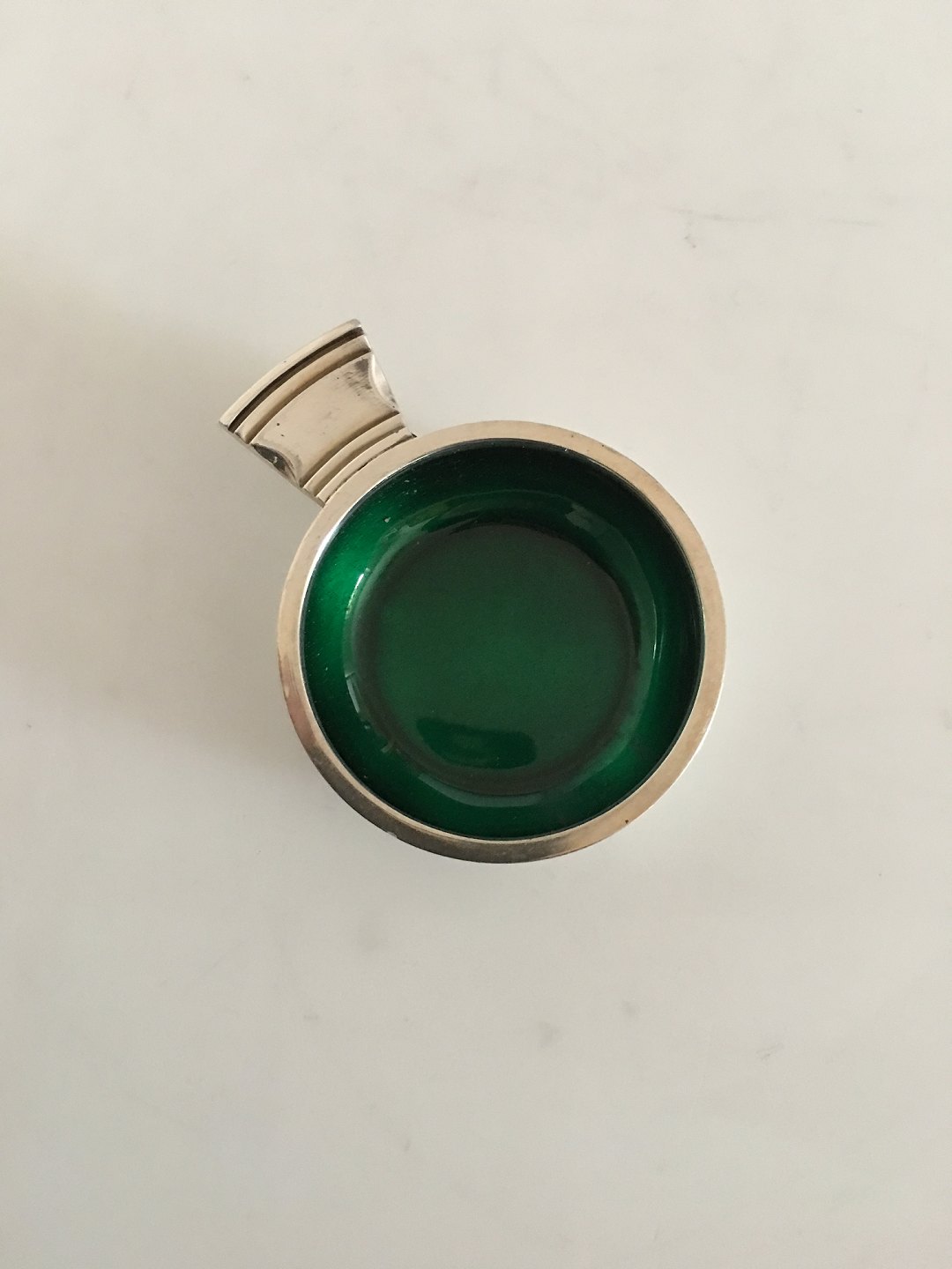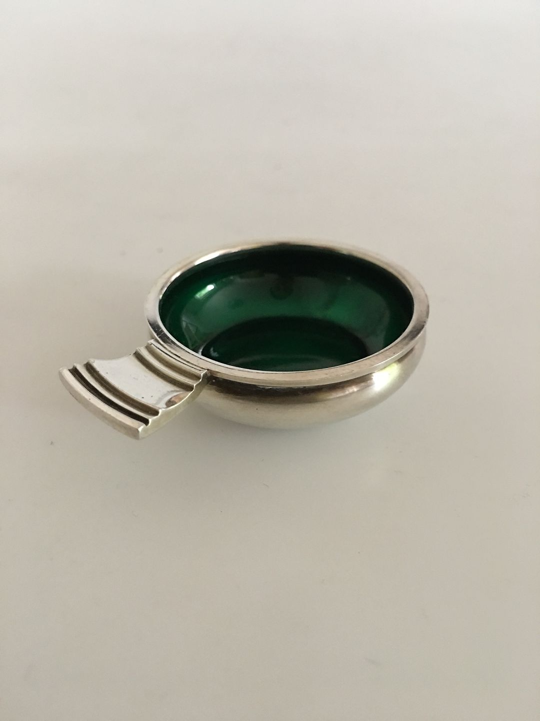Georg Jensen Continental Sterling Silver Salt Dish No. 4 with Green Enamel. 1.5 cm H (0 19/32"). 4 cm dia (1 37/64"). Weighs 25 grams (0.90 oz).