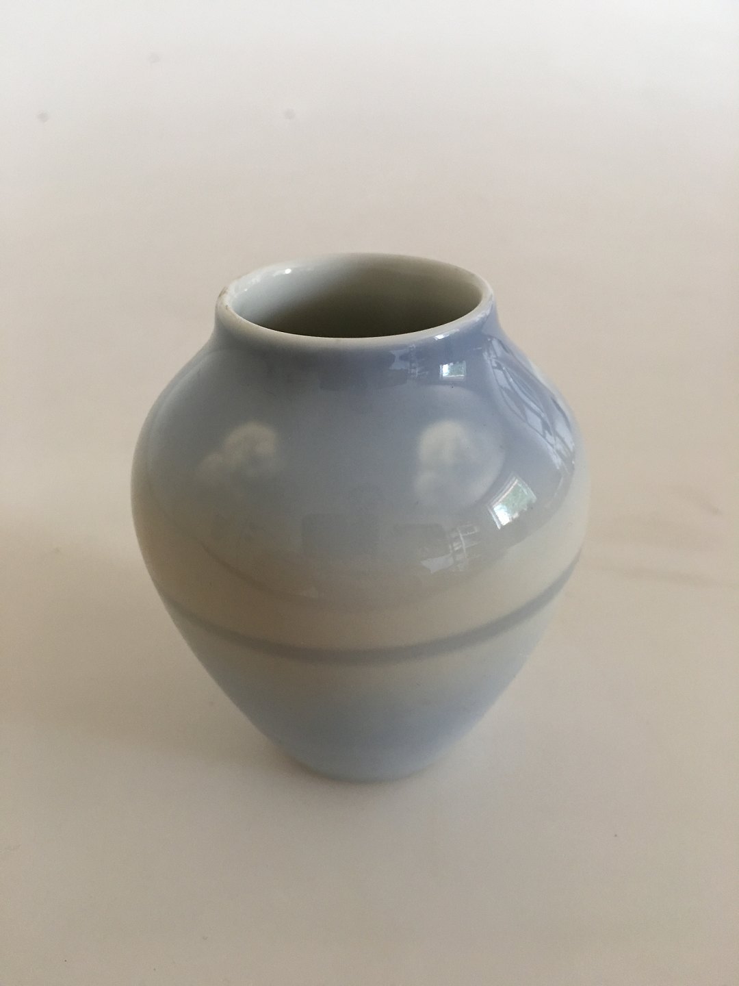 Bing & Grøndahl Vase No. 500/5012 med Sø og Ø Motiv. 9 cm Høj. 1. Sortering fra 1970-1983. I pæn hel stand.