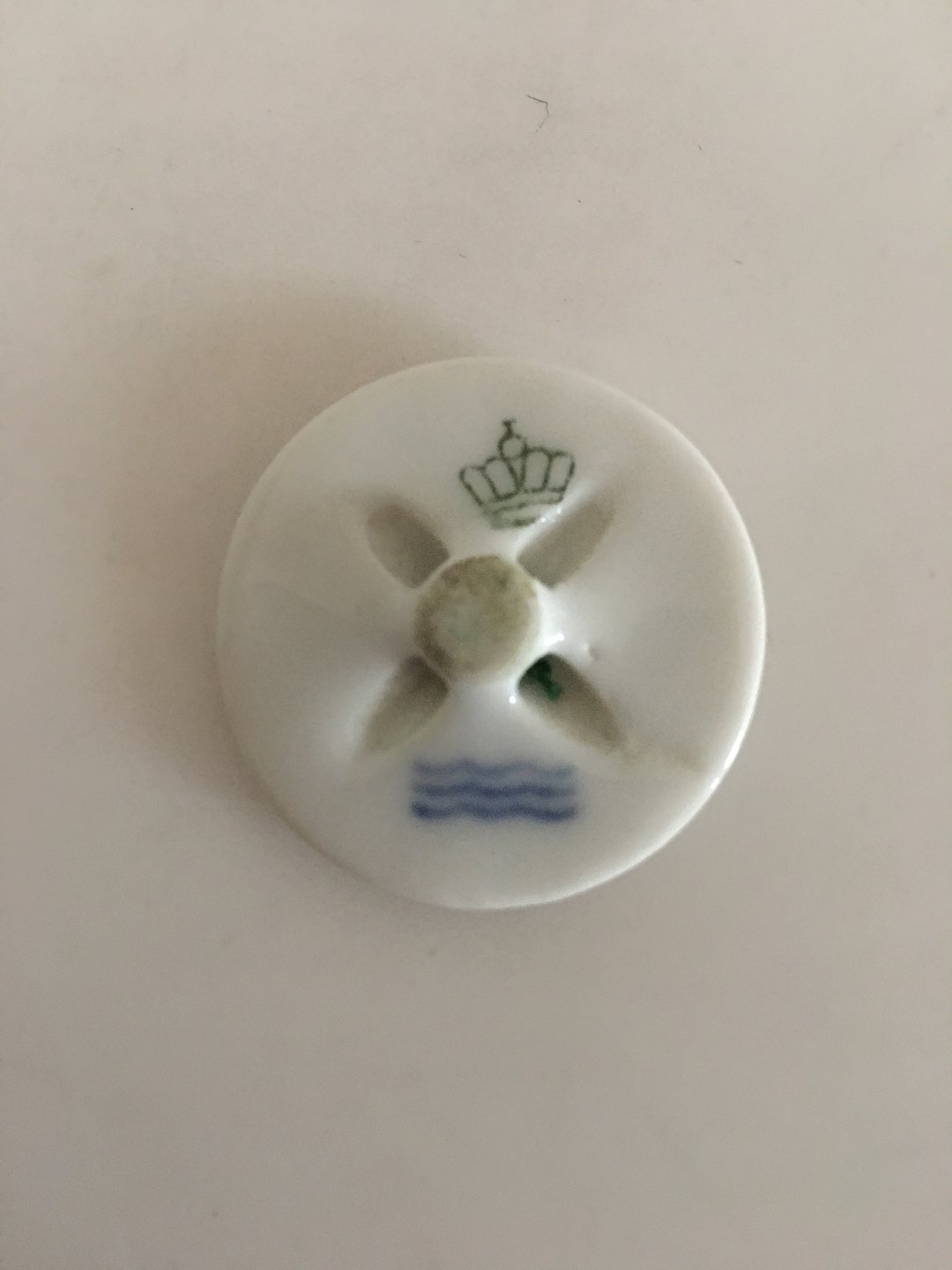Royal Copenhagen Porcelæns Knap med Håndmalet Motiv af Musikant. 3 cm dia.