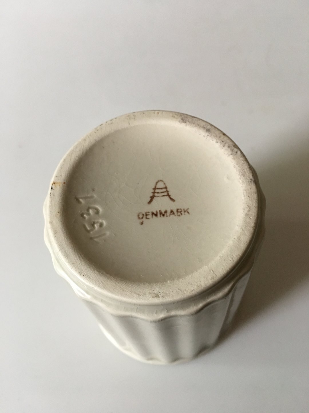 Aluminia Vase Blue. Measures 12c x 8,5cm and is in good condition.