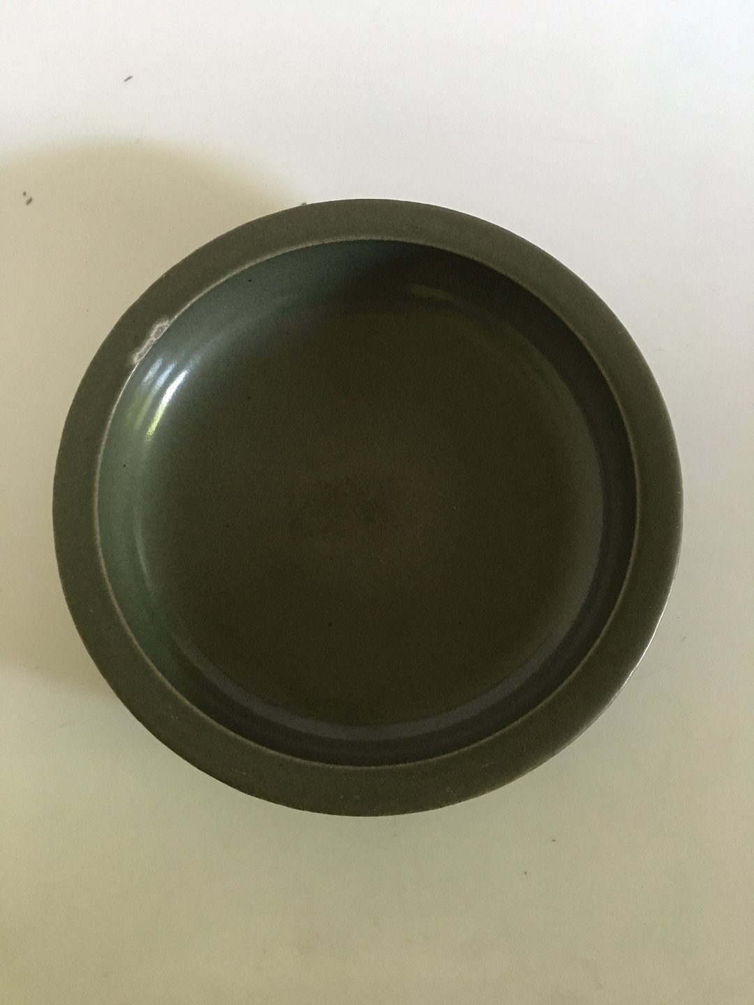 Royal Copenhagen Alev Siesbye Keramik Skål . Olivengrøn 33 cm diameter. 7.5 cm høj. Skålen har desværre fået et slag på kanten (se billede).