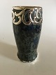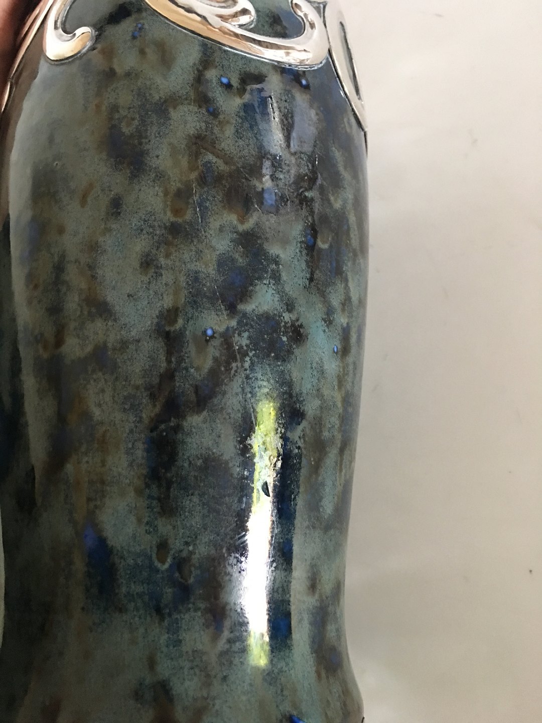 Bing & Grøndahl Unika Vase med Sølv Montering af Lotte Lindahl fra 1913 i løbeglasur.