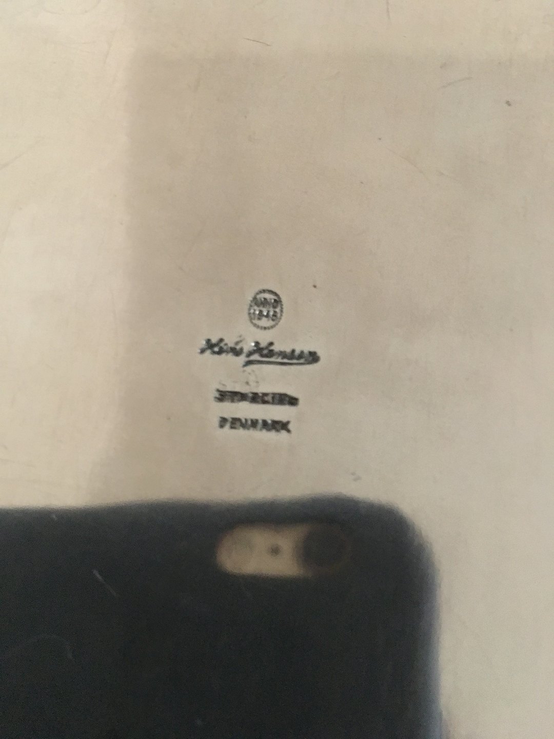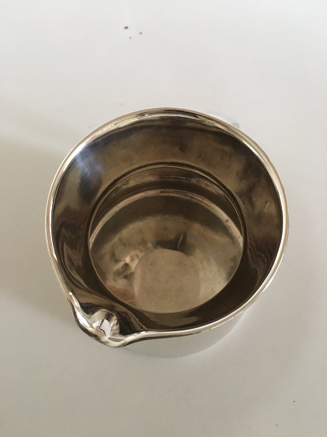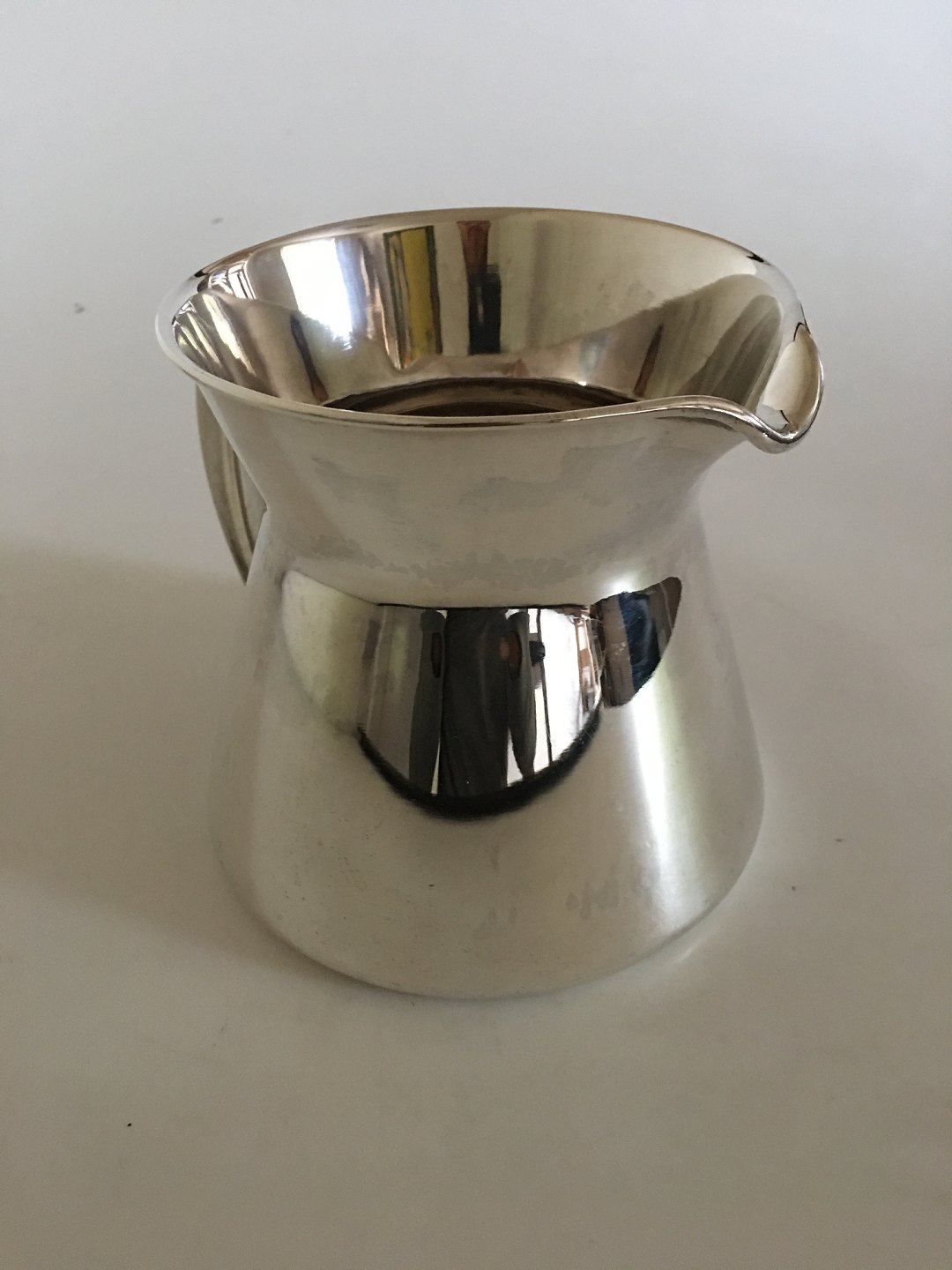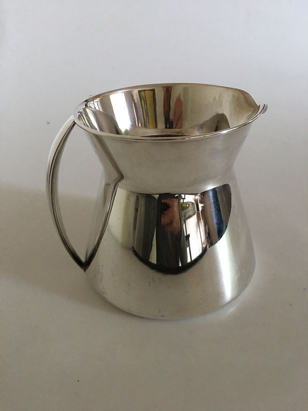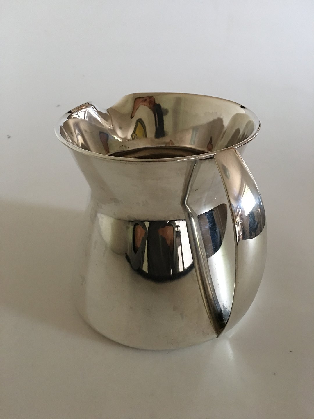 Large Hans Hansen Sterling Silver Pitcher / Water Jug with Handle. 15 cm H. 16 cm diameter. Weighs 811 grams (28.60 oz). In fine condition. Made in 1948.