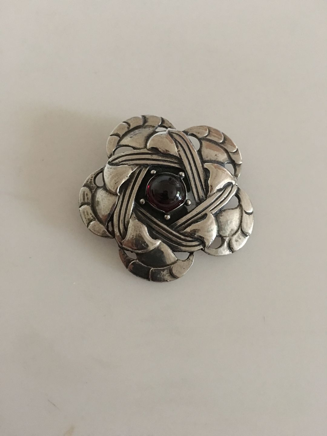 Tidlig Georg Jensen Sølv Broche med Rød Karneol. Måler 4 cm diameter. Vejer 12 gram. Produceret 1909-1914. I fin stand.