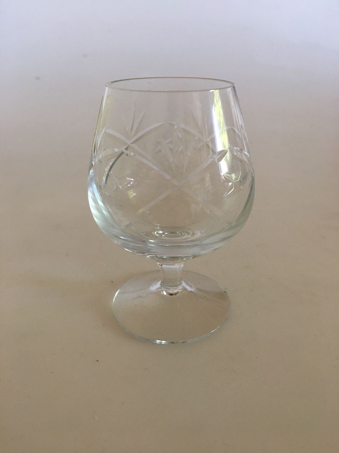 Holmegaard Ulla Cognacglas. Måler 9 cm H. Glas med skær og kryds slibning og glat stilk.