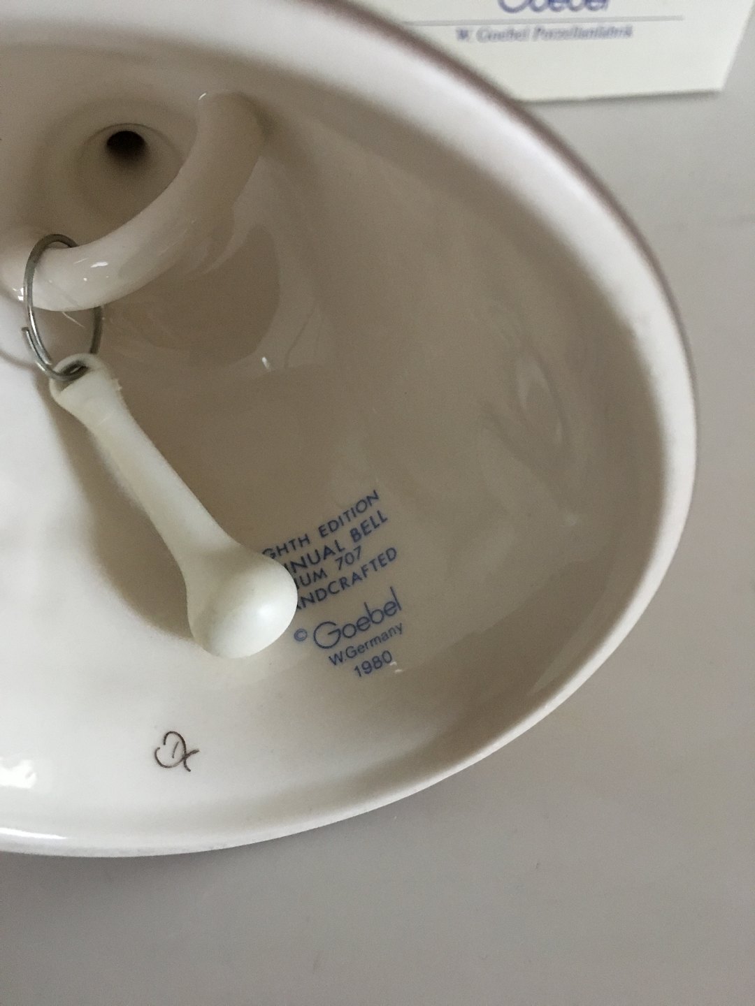Hummel Annual Bell 1985 in bas-relief. Eighth Edition 1978-1992. Goebel Porcelain Germany. 15 cm H. 10 cm diameter.