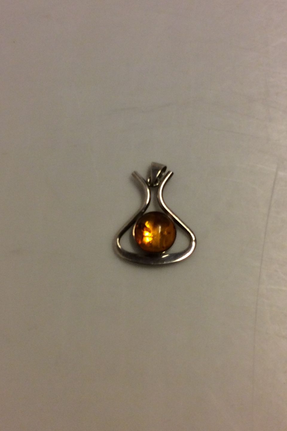 Niels Erik From Sterling Silver pendant with amber. Measures 3.7 cm x 3 cm / 1 1/2" x 1 3/16". Weighs: 7.79 g / 0.27 oz.