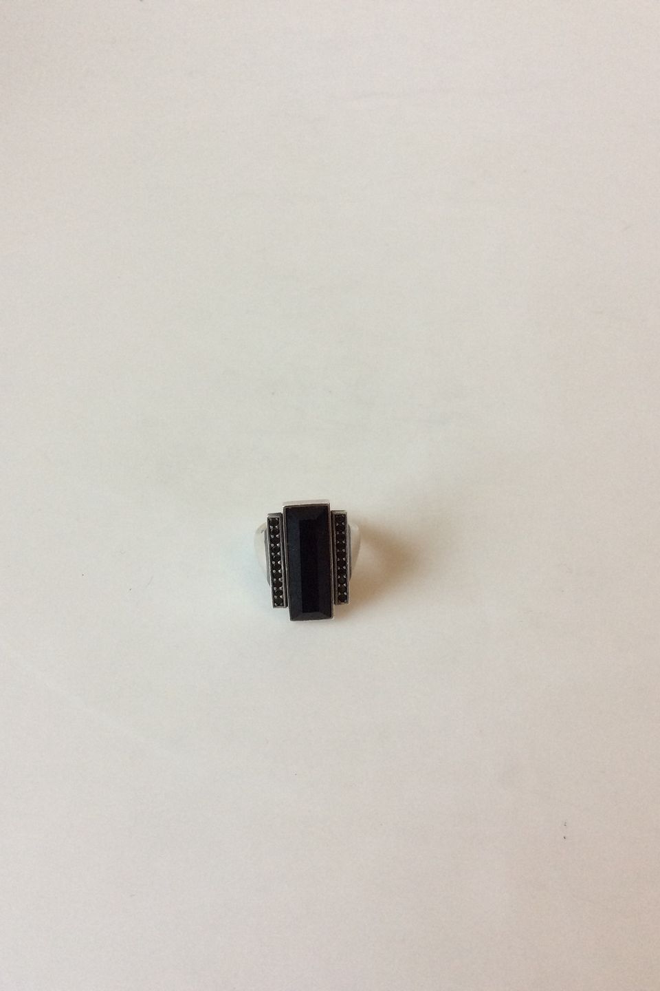 Georg Jensen. Nocturne ring 571A in sterling silver with black agate and treated pavement-black diamonds. Str 55. Design Regitze Overgaard.
