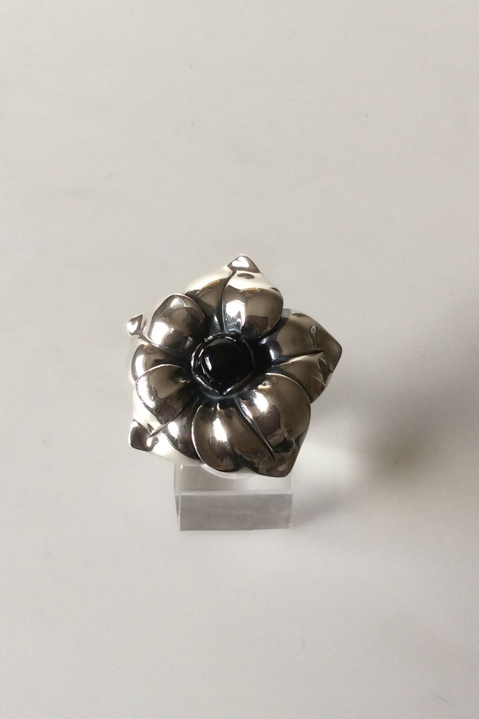 Georg Jensen Sterling Silver Ring No 562A with Black Agate. Ring Size 53 / US 6 1/2. Weighs 17 g./ 0.60 oz.