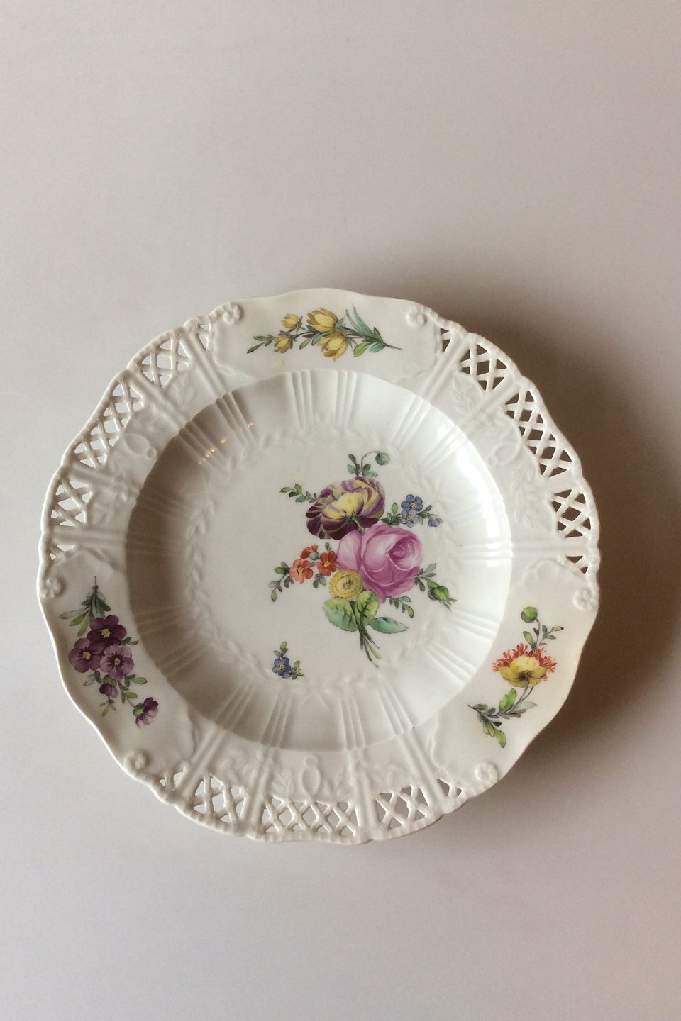 Royal Copenhagen Saksisk Blomst Middags-/Frugttallerken i luksusmodel med gennembrudt kant.