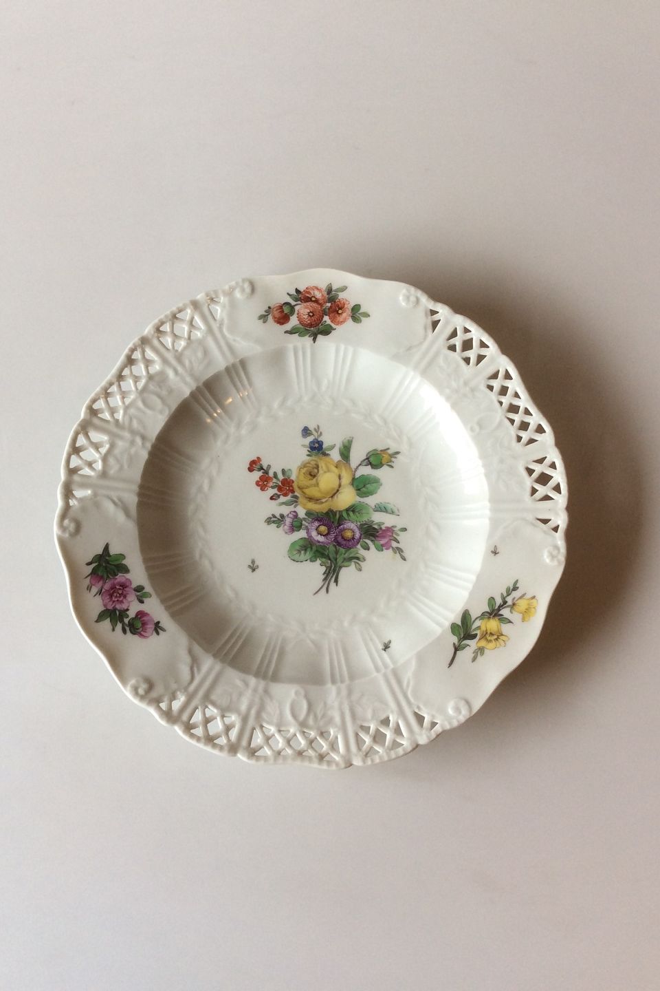 Royal Copenhagen Saksisk Blomst Middags-/Frugttallerken i luksusmodel med gennembrudt kant.
