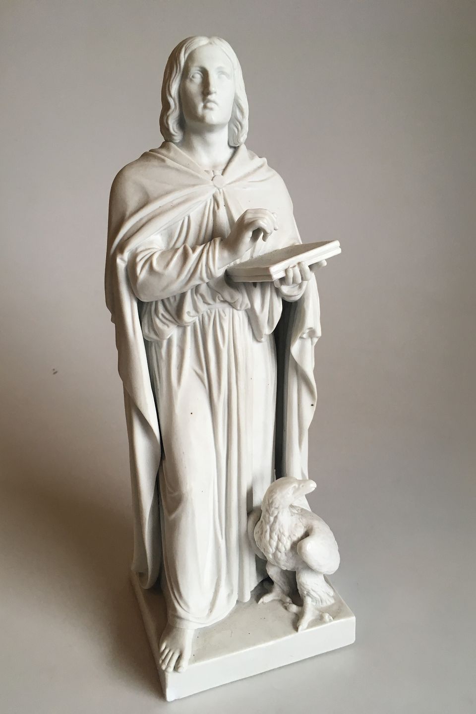 Royal Copenhagen Composite Resin Figurine of Apostle Johannes by Bertel Thorvaldsen. Originally made by Pietro Marchetti. Measures 32 cm / 12 19/32". Marked: "Eneret A". Small chip on finger and base. Iron Pen missing.