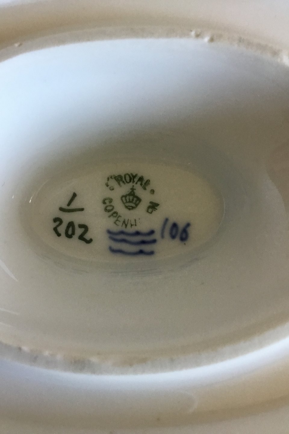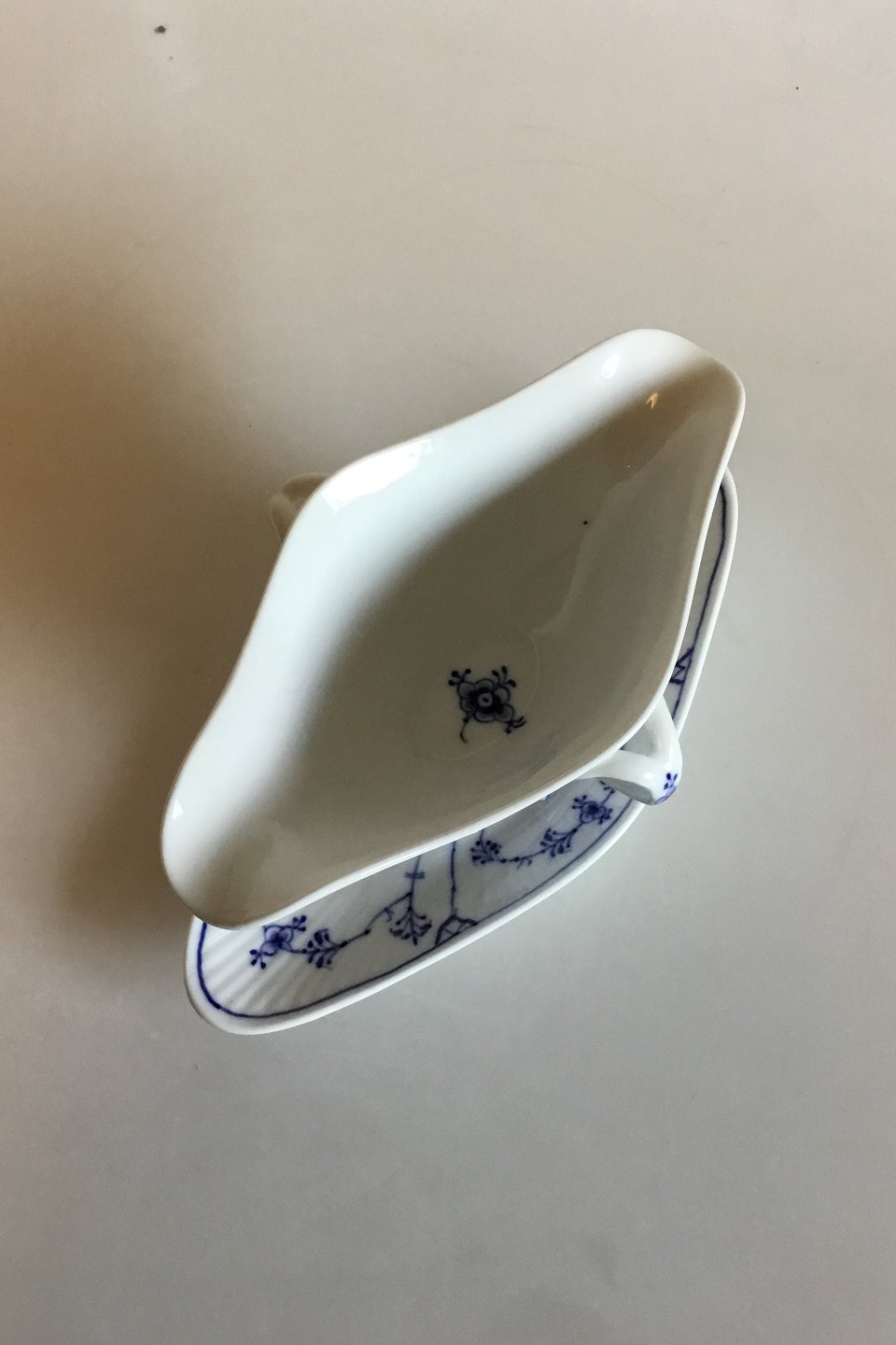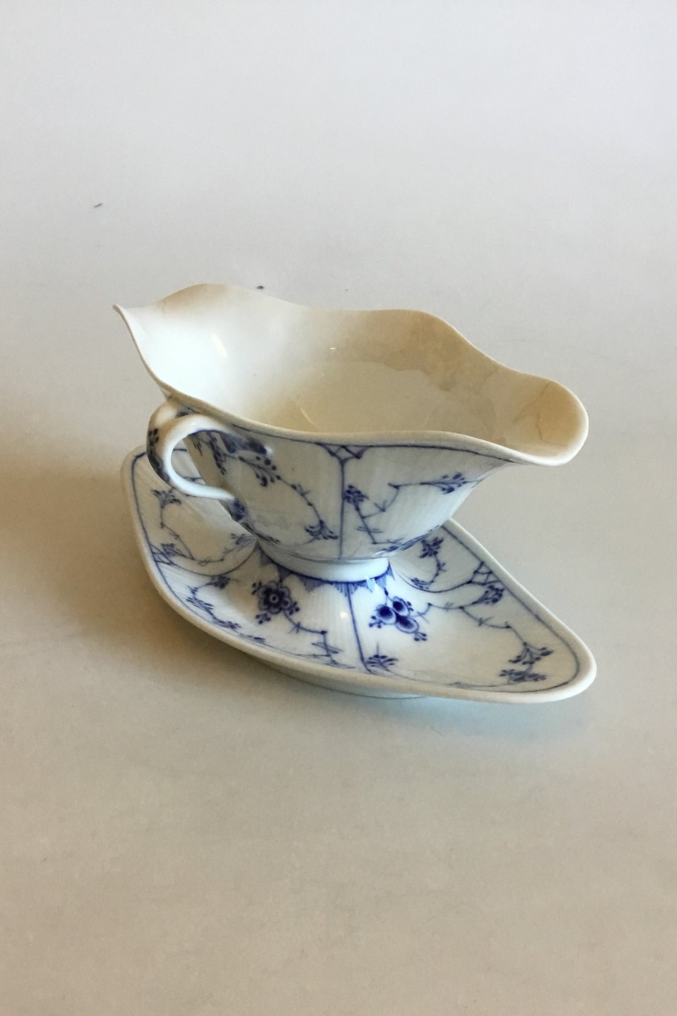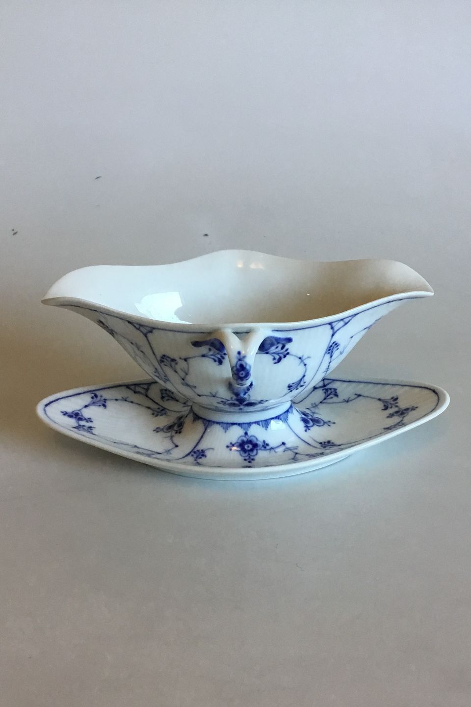 Royal Copenhagen Blue Fluted Plain Sauce Bowl No 1/202. Measures 24.5 cm x 10 cm / 9 41/64 in. x 3 15/16 in.