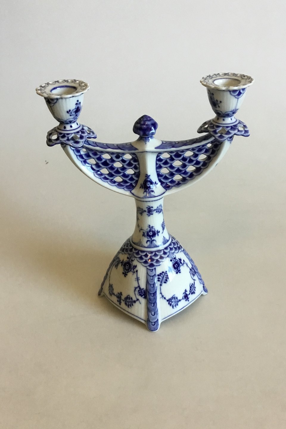 Royal Copenhagen Musselmalet Helblonde Sæt af to Lysestager No 1/1169. Måler 25 cm