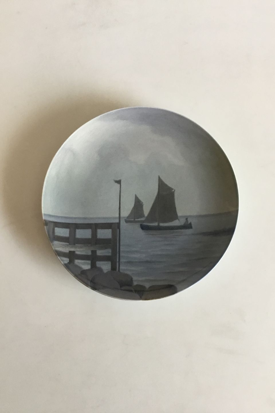 Bing & Grøndahl Art Nouveau Vægtallerken med Sejlskibe No 8247/357-20. Måler 20,4 cm og er i perfekt stand