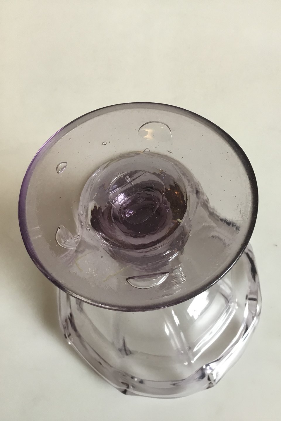 Lille glasopsats af lyslilla glas. Måler 11,5 cm