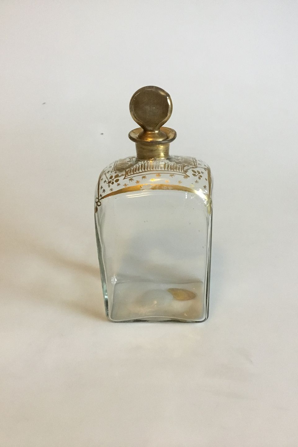 Firkantet karaffel med forgyldt prop. Måler 18 cm