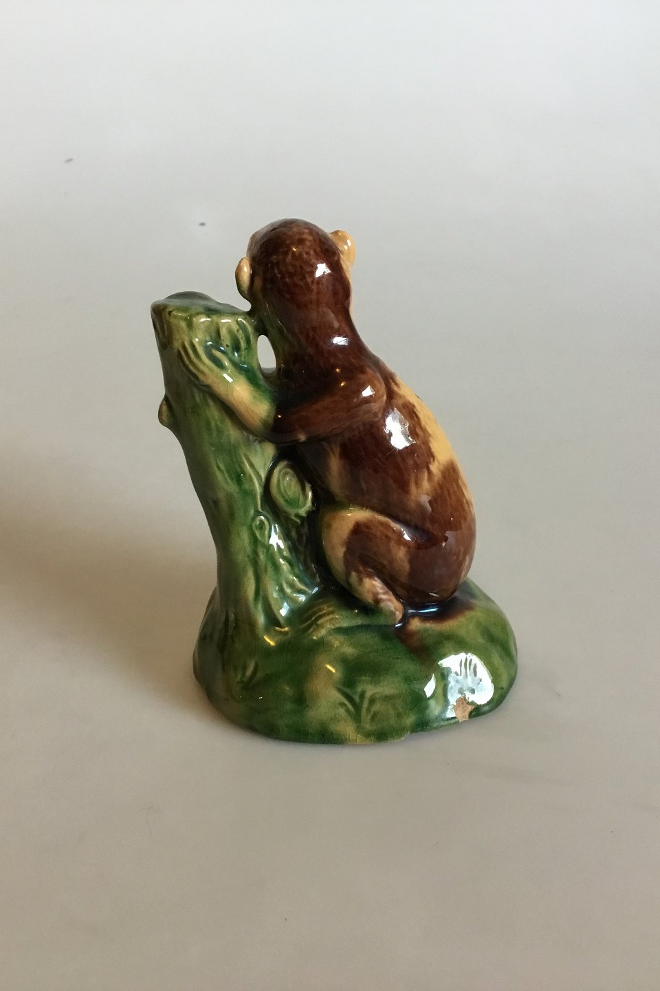 Sparebøsse i form af abe. Måler 12 cm. Afslag ved møntindkast.