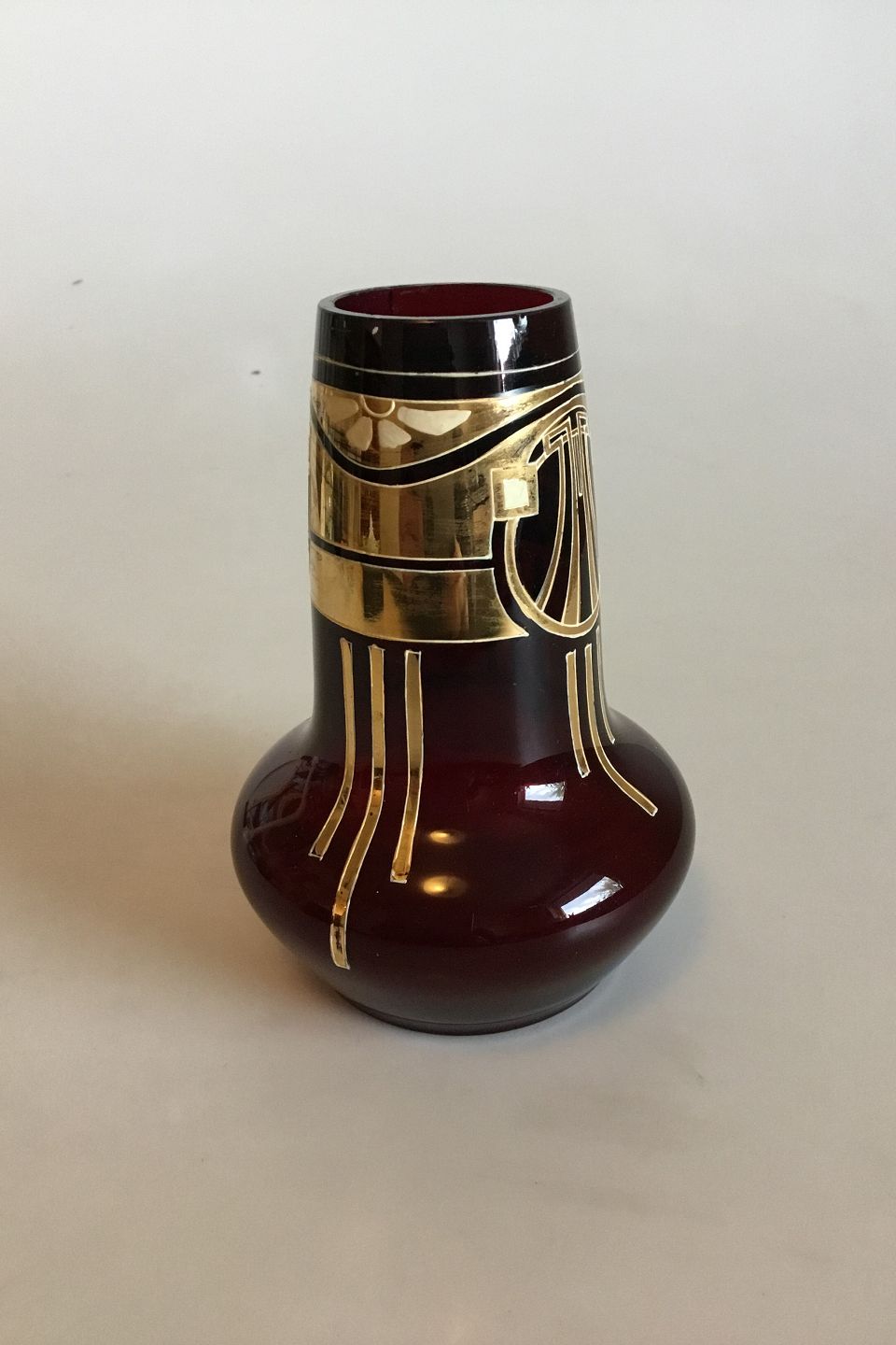 Bordeaux Red Vase with Gold Decoration. Measures 13.5 cm / 5 5/16"