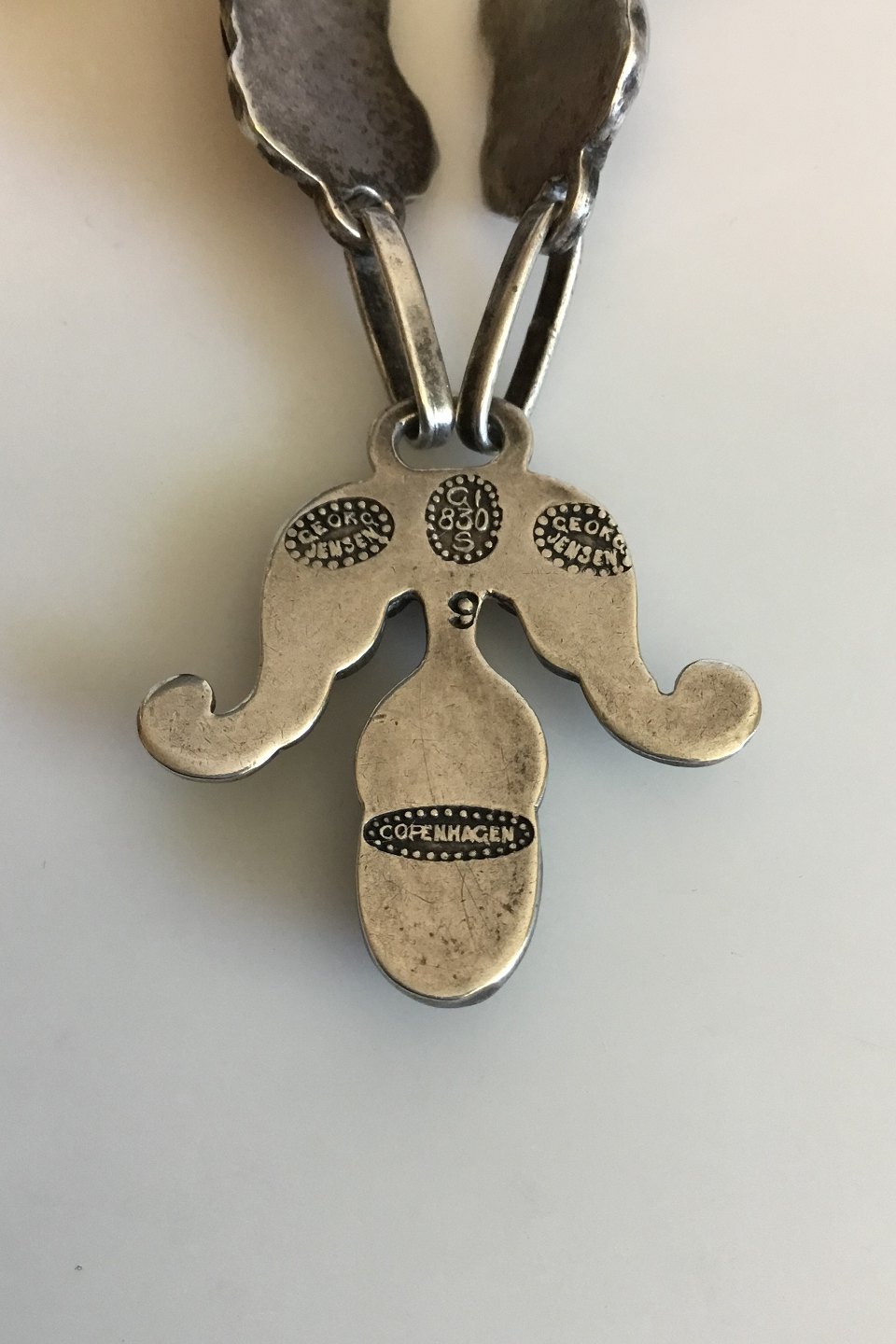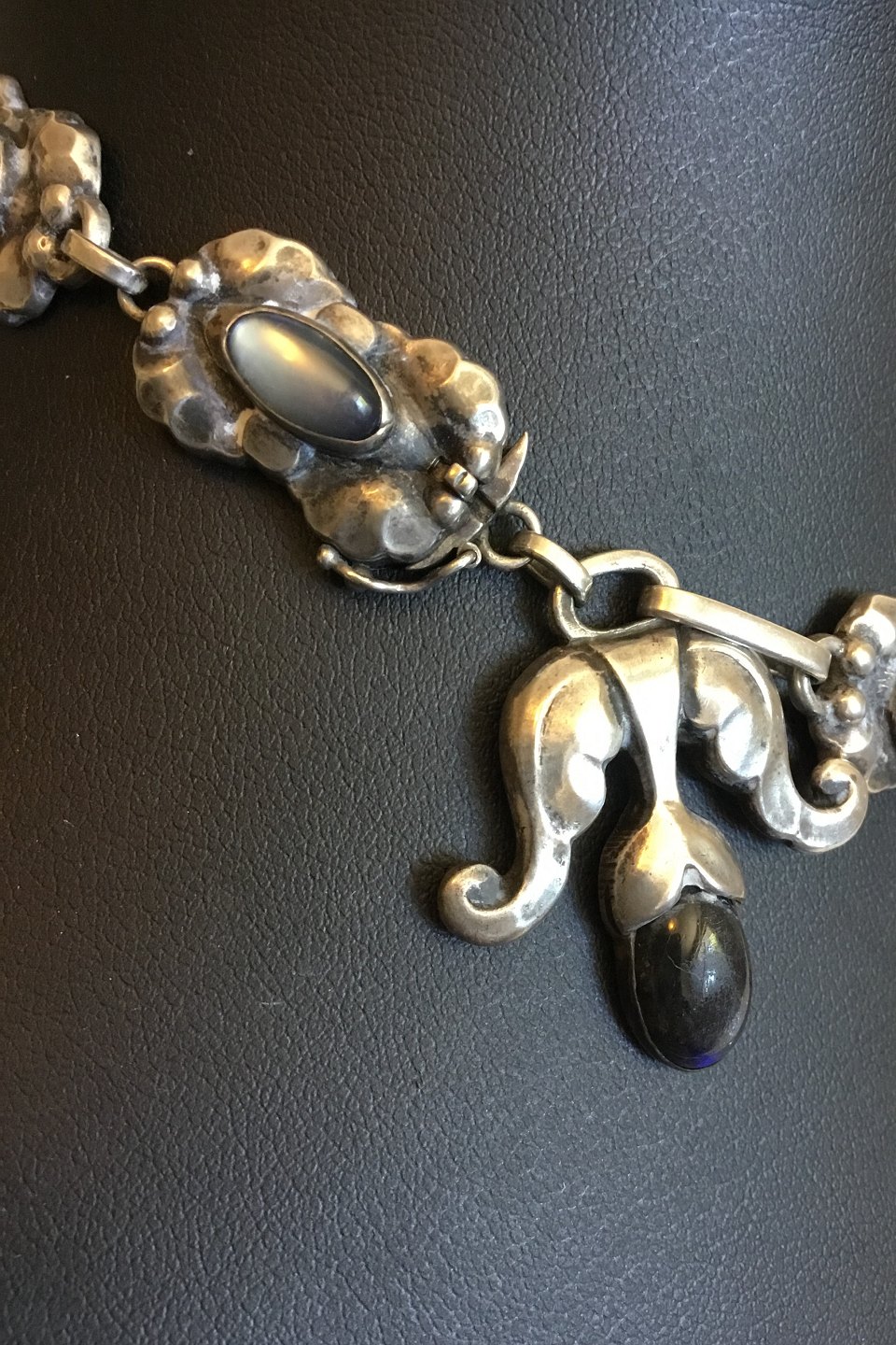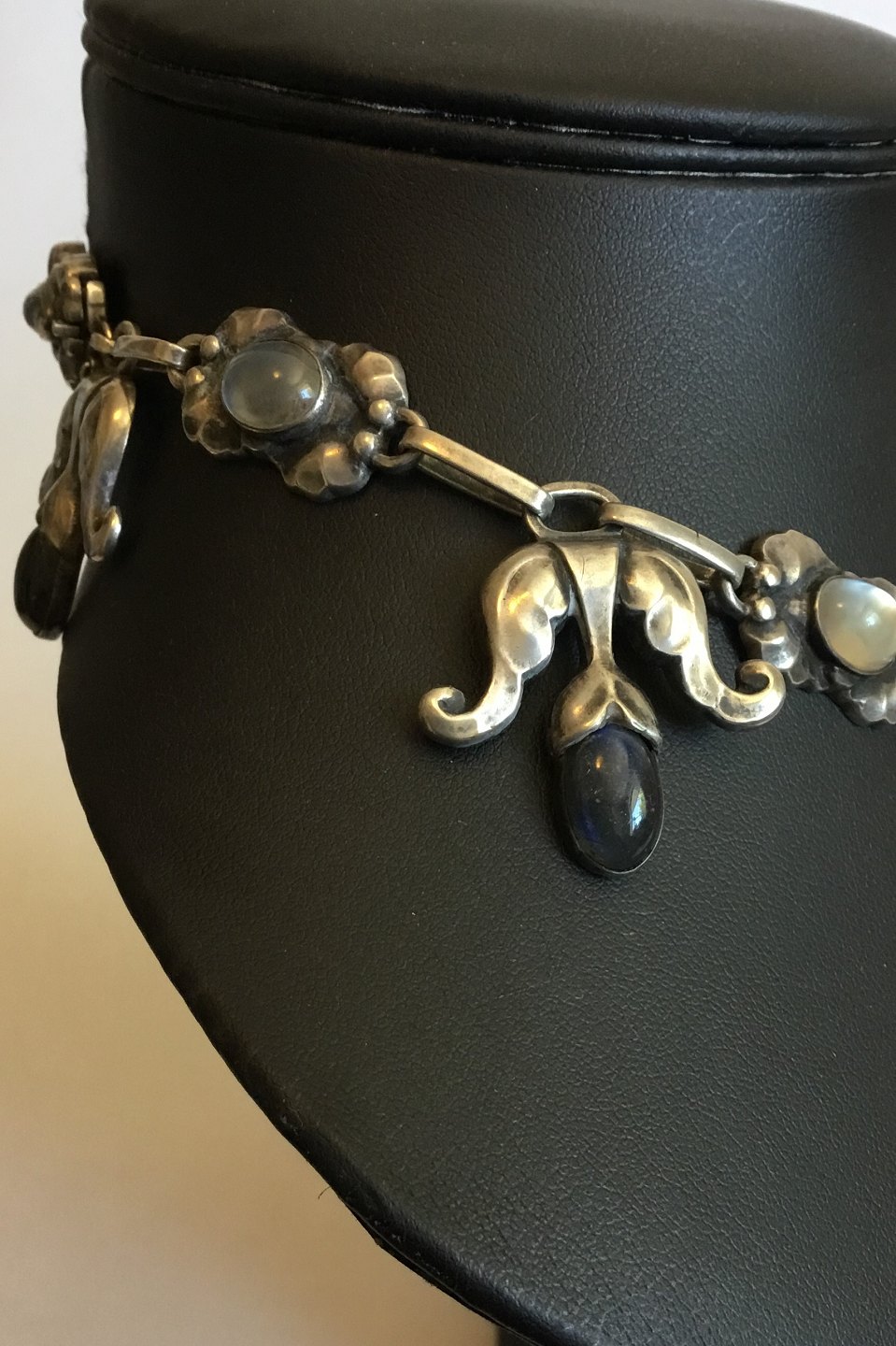 Georg Jensen Silver 830S Necklace No 9 with Moonstones and Labradorites. Measures 39.5 cm / 15 35/64 in. Weighs 60 g / 2.10 oz.