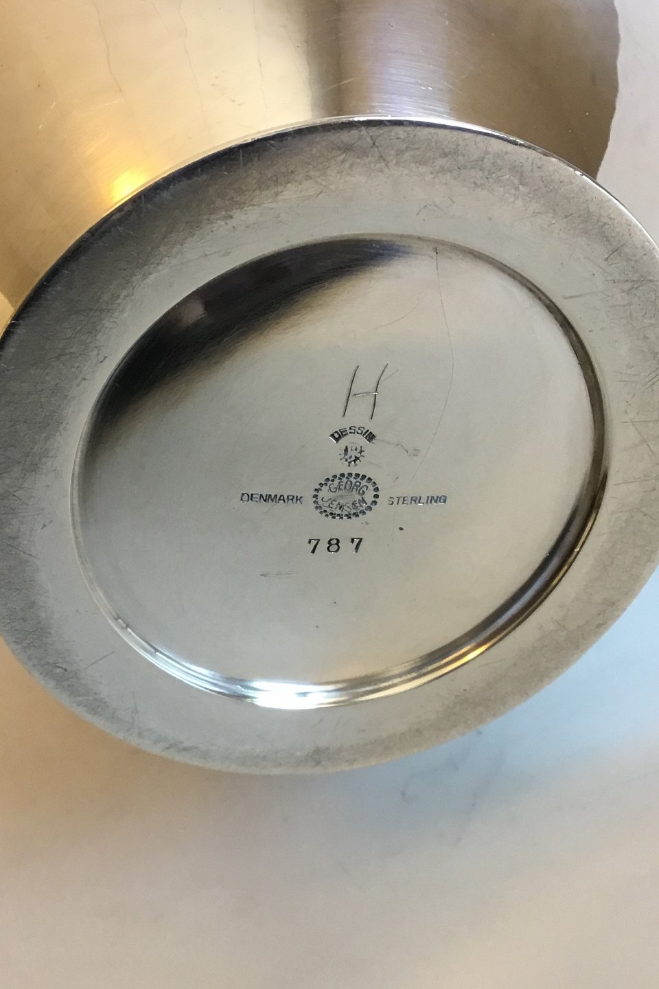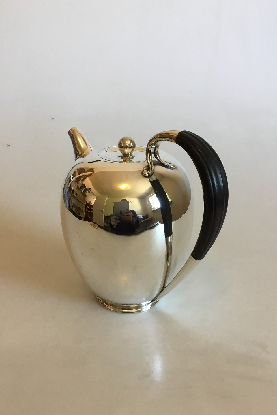 Georg Jensen Sterling Sølv Kaffekande No 787 med Håndtag af Sort træ. Fra efter 1945