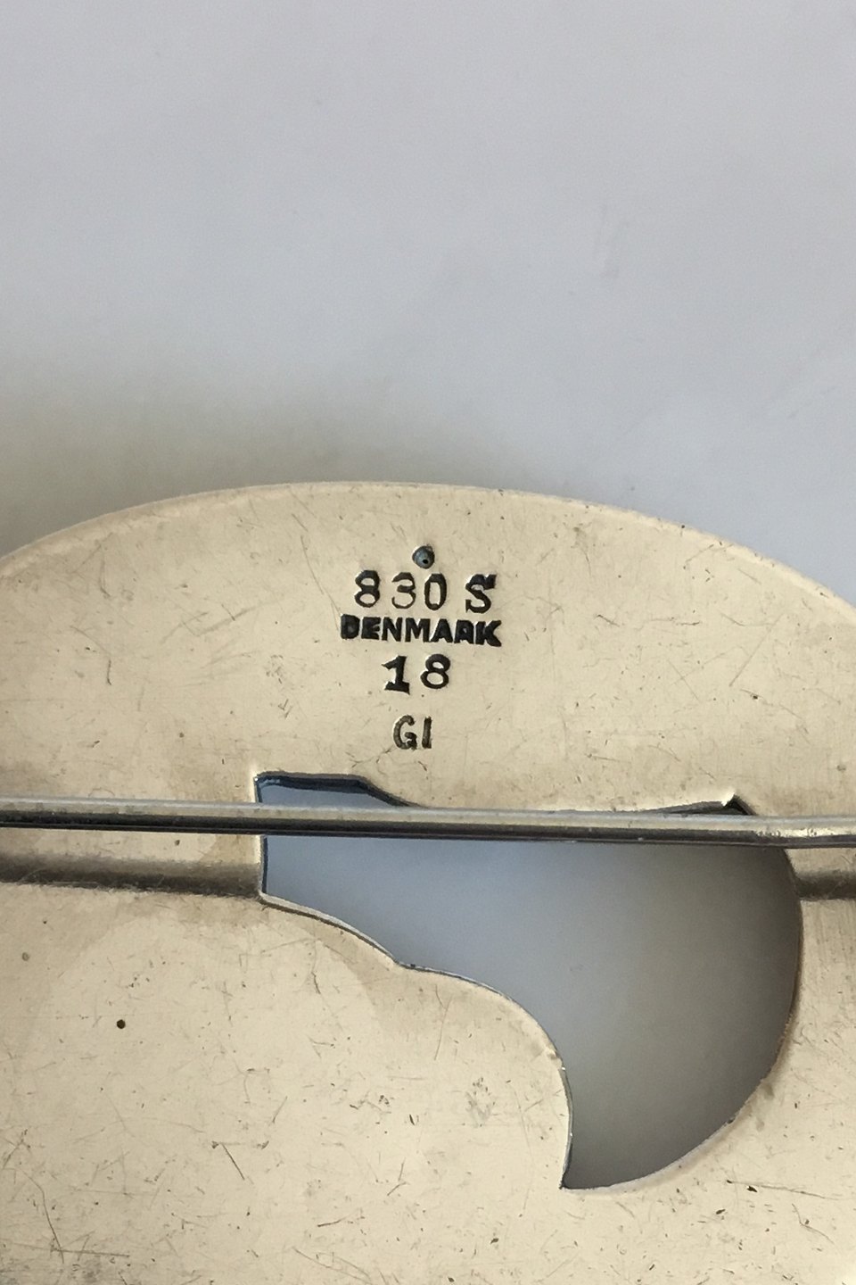 Georg Jensen 830 S Brooch No 18. Measures 4.5 cm / 1 49/64 in. x 3.4 cm / 1 11/32 in. Weighs 10.7 g / 0.38 oz. Early marks