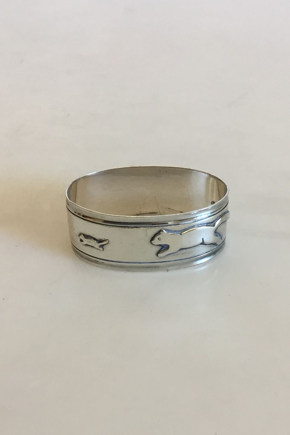Cohr Sølv Servietring med Kat efter mus. Måler 5 cm x 3 cm. Vejer 20,9 gram