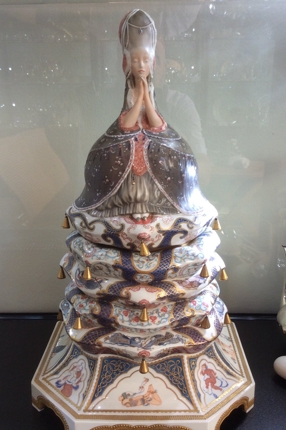 The Princess is 45 cm high; it has been painted with more than 80 colors. The Princess is a bonbonniere, which means that the top can be taken off.