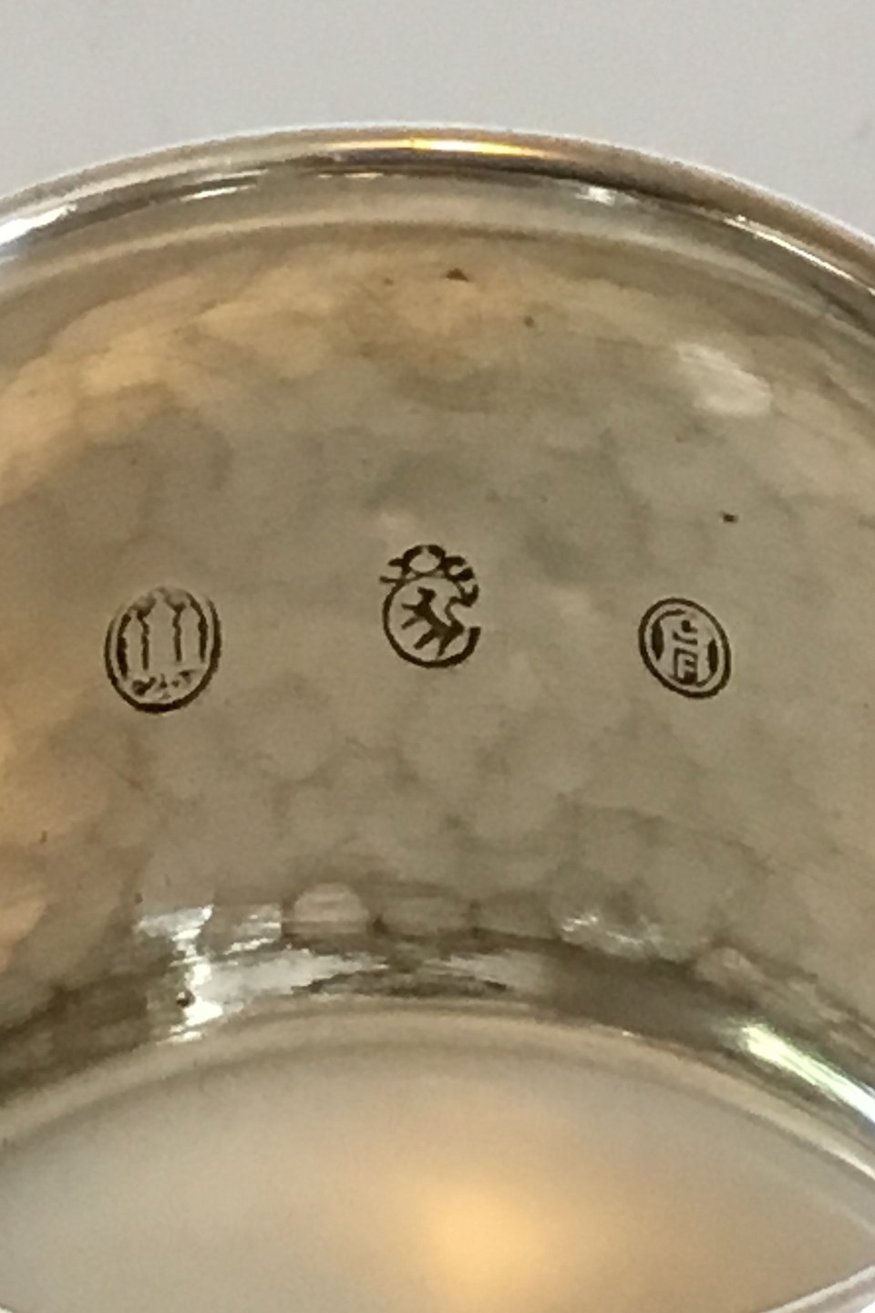 Servietring i sølv med Fransk lilje. To små buler. Måler 3,2 cm x 4 cm dia.