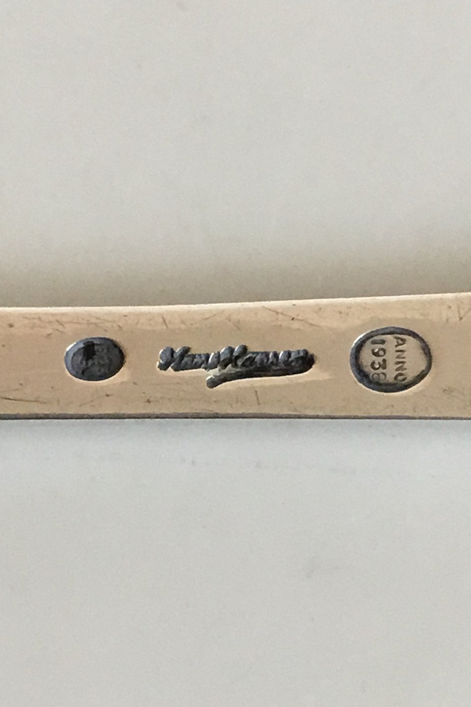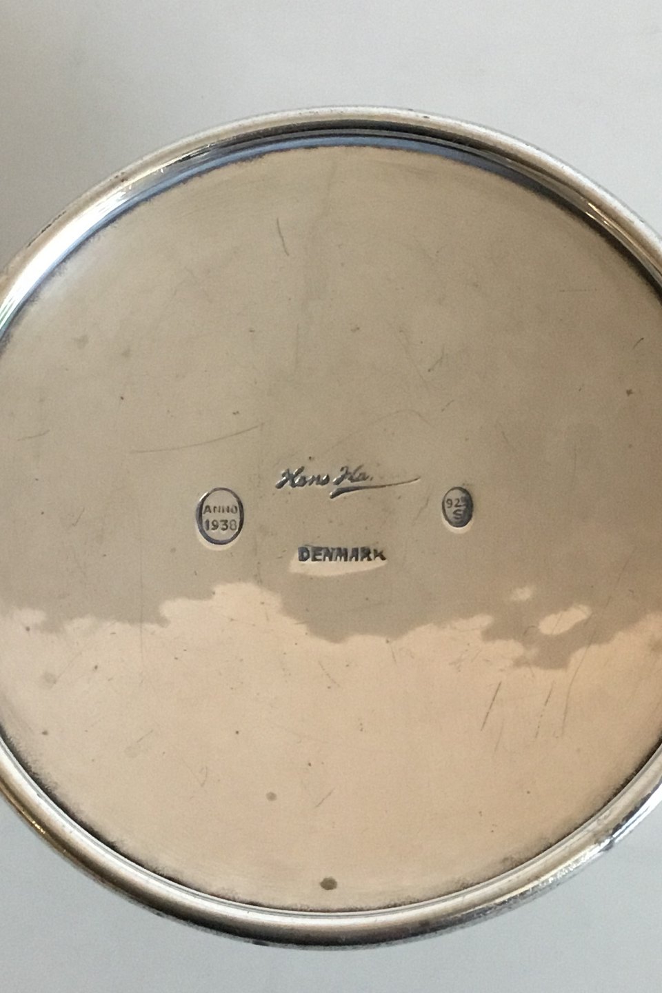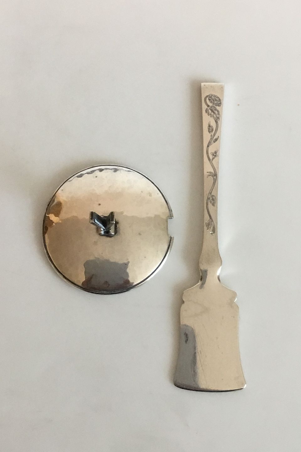 Hans Hansen Låg og Honningske i Sterling Sølv. Anno 1935. Måler Låg: 6,6 cm dia. Ske: 15,5 cm. Vejer tilsammen 88 gram