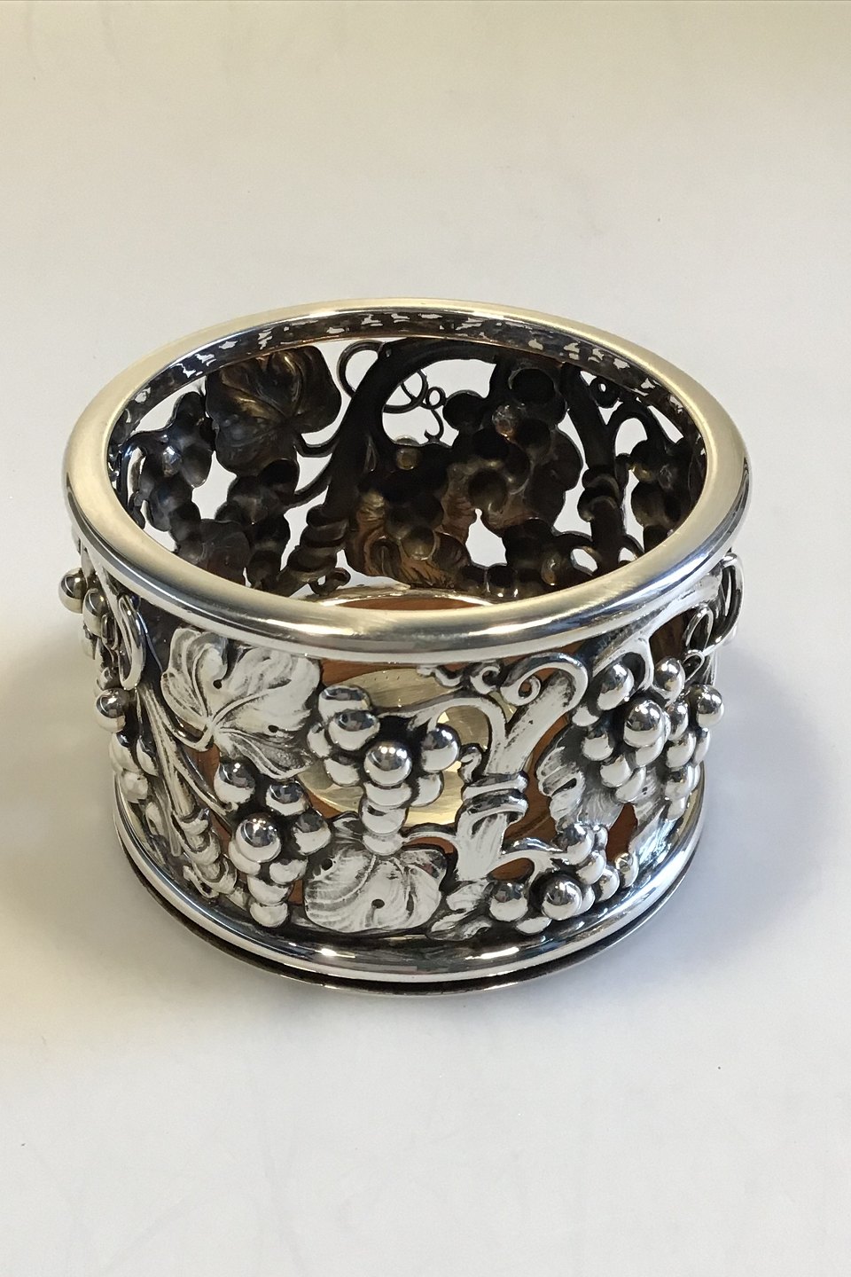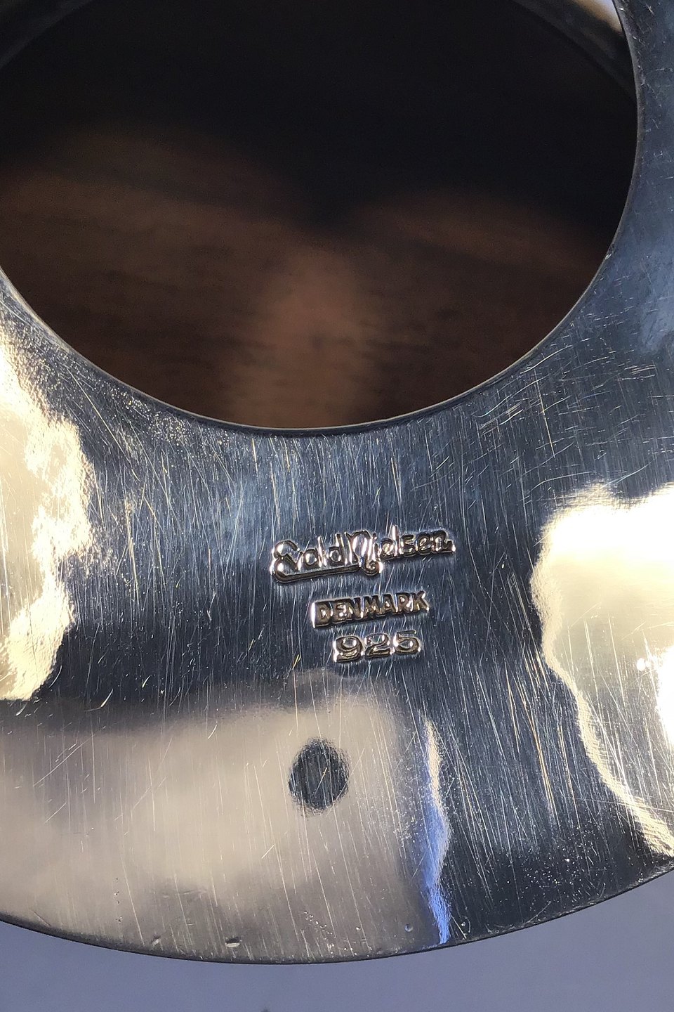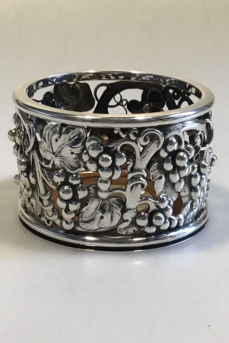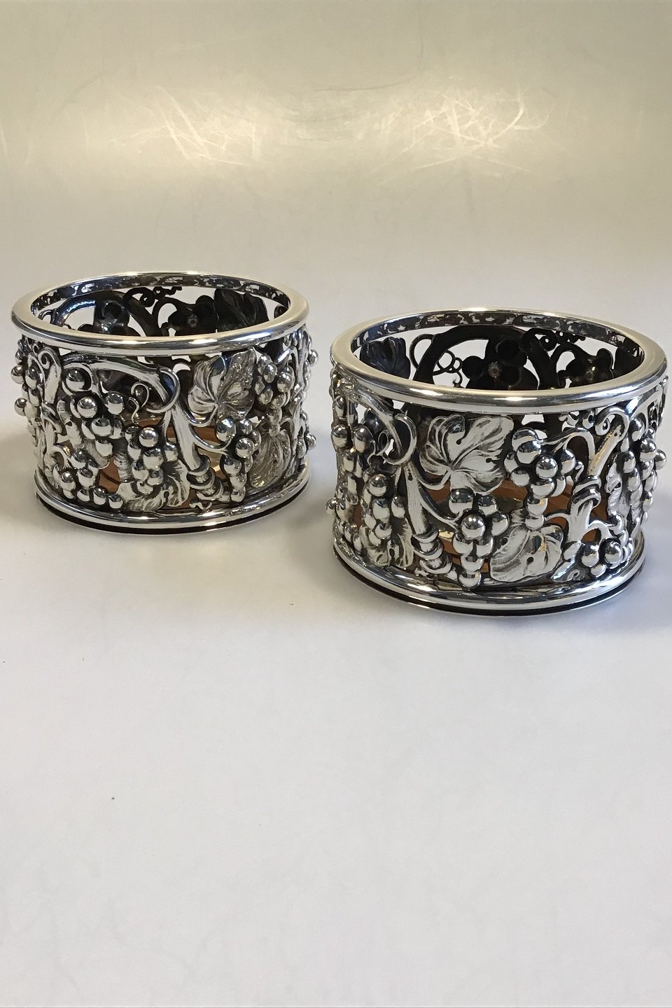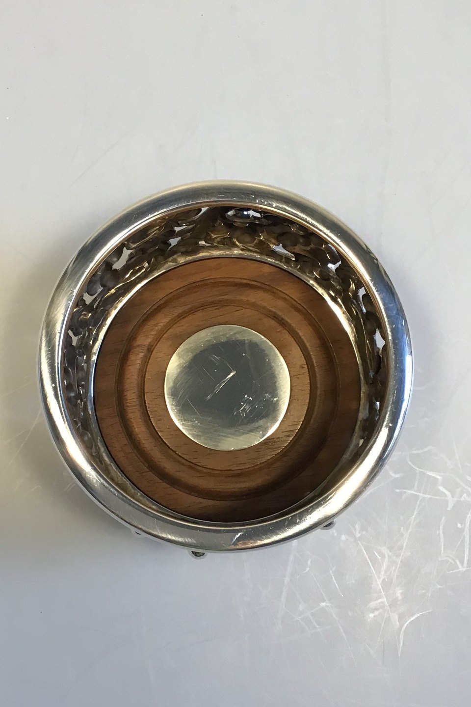 Evald Nielsen Sterling Sølv Flaskebakke med rosentræsbund med inskriptionsplade H 7,5 cm Diam 11,0 cm Vægt 550 gr.