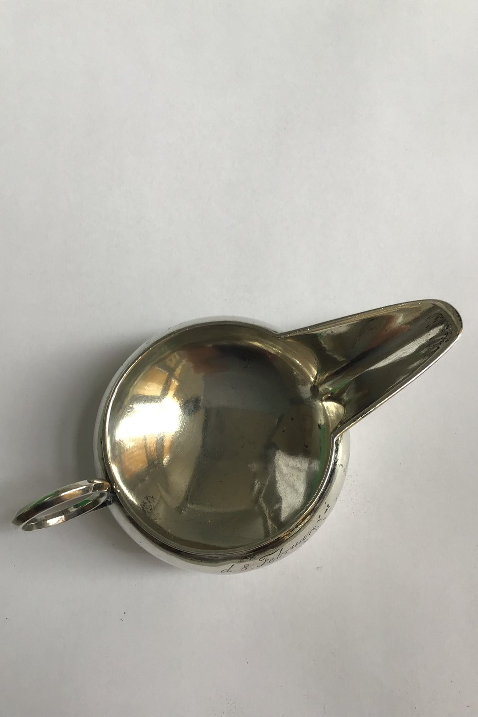 Silvercreamer long spout H 3 cm/1.18 " Weight 52.1 gr /1.83 oz. Produced 1872 With engraving