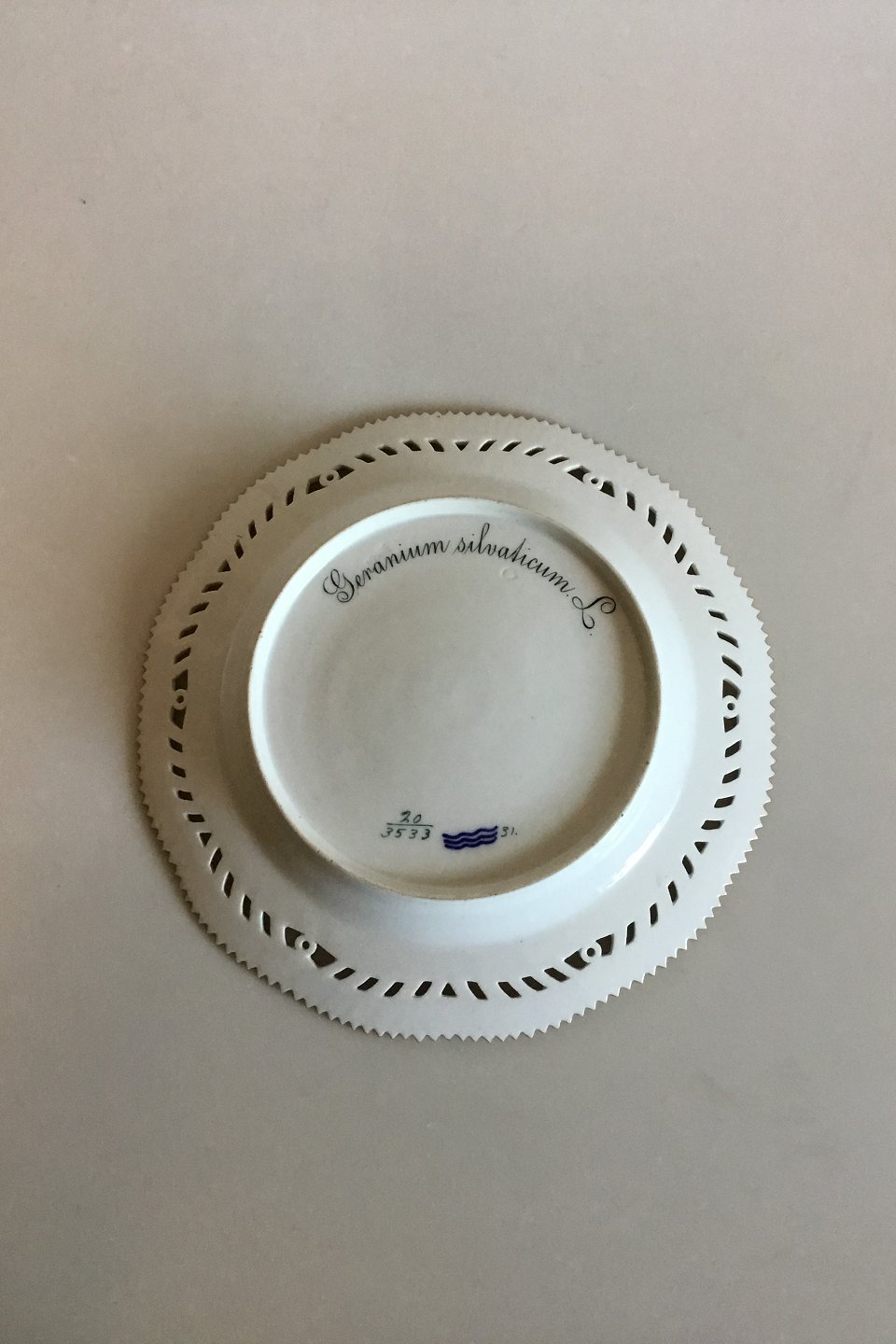 Royal Copenhagen Flora Danica Lunch Plate No 20/3533. Measures 22.7 cm / 8 15/16 in. 1st Quality. Pierced Border. Latin name: "Geranium silvaticum L."