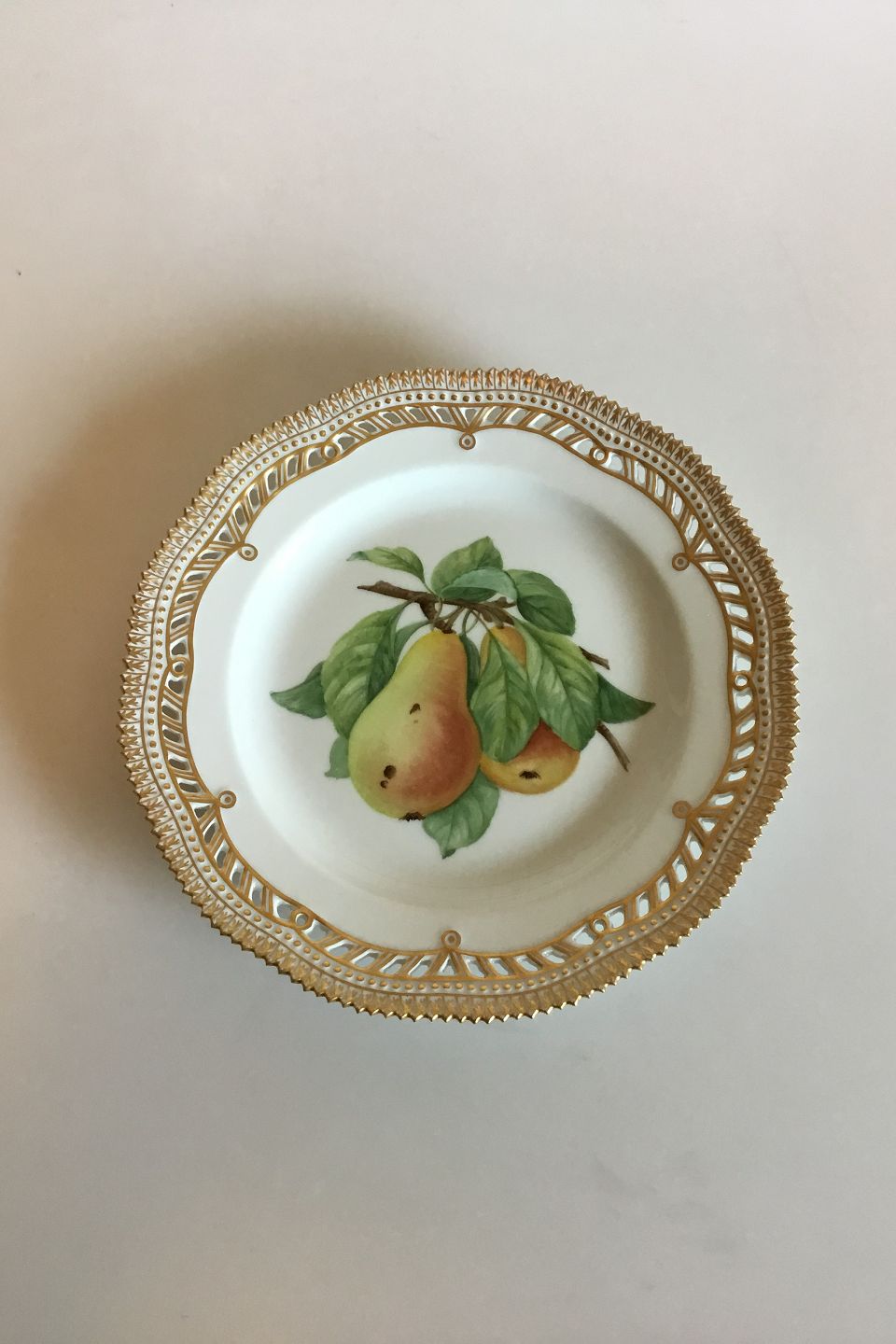 Royal Copenhagen Flora Danica Fruit Plate No 429/3554. Measures 22.7 cm / 8 15/16 in. 1st Quality. Pierced Border. 1969