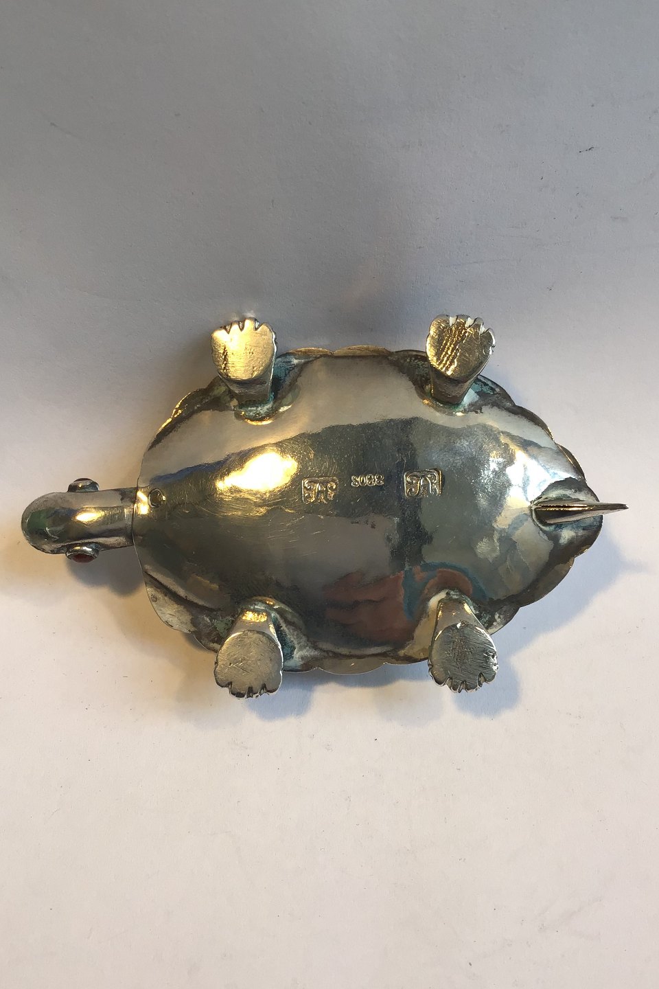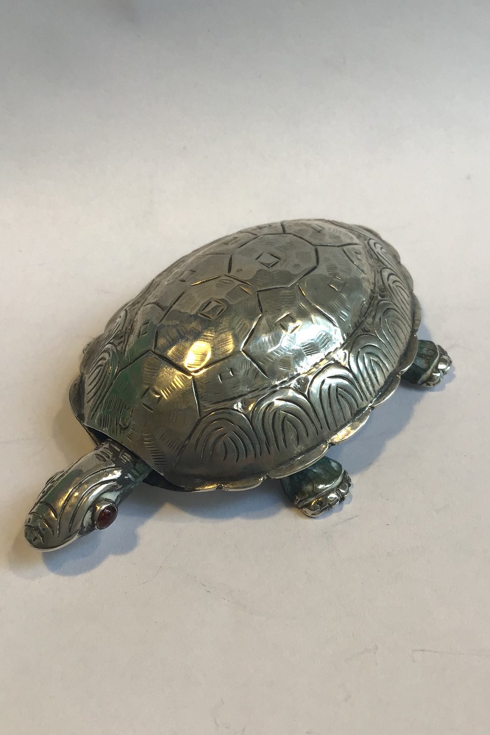 Skildpadde af sølv med bevægeligt hoved. Delvist pseudostempler. L. 9,5 cm. 1900-tallet.