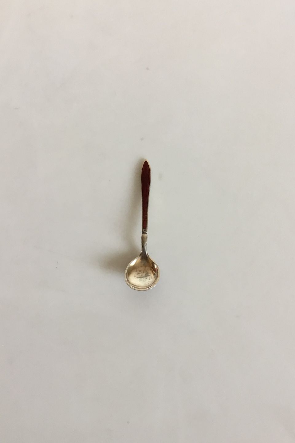 David Andersen, Norway, Gilded Salt Spoon with red Enamel. Measures 6.1 cm / 2 13/32 in.
