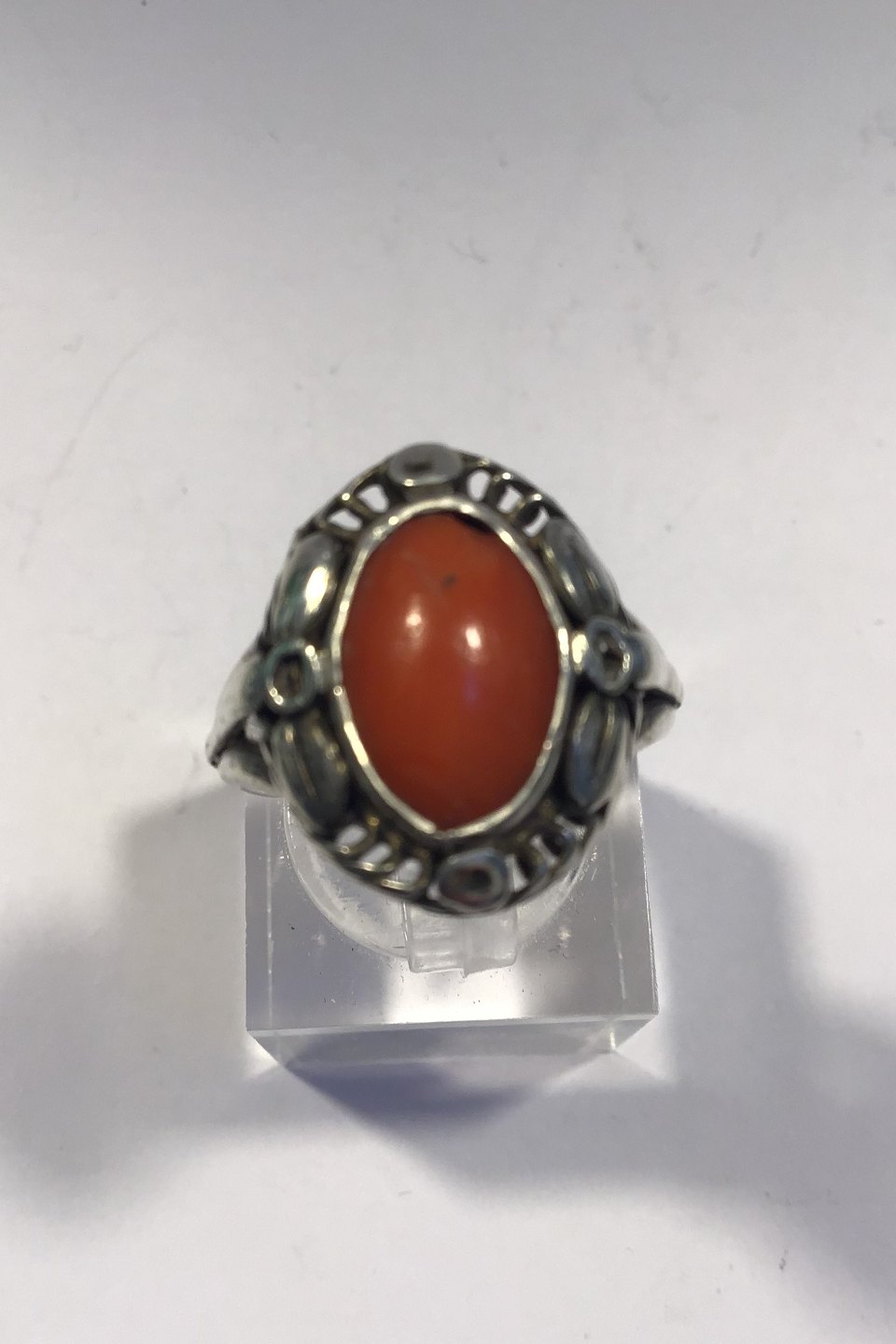 Georg Jensen Sterling Silver Ring with coral Size.53/US 6� Weight 4.8 gr/0.17 oz