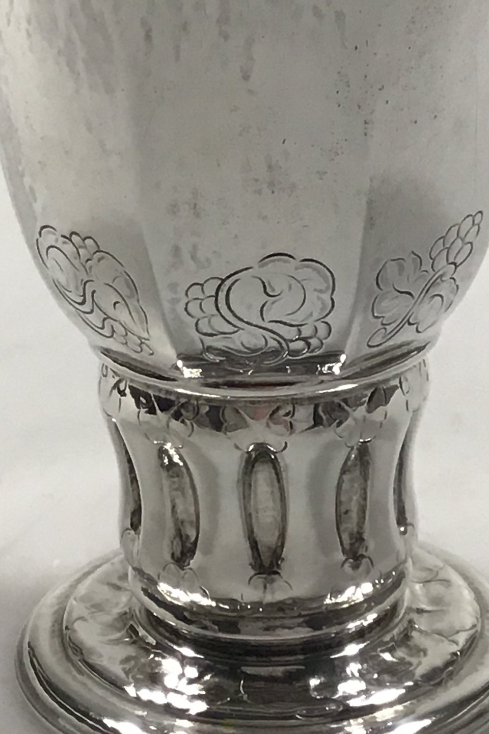 Georg Jensen Silver Vase No 60 (1919) Leaf and Grape Decoration H 13.2 cm/5.19" Diam 9 cm/3.54" Weight 229 gr/8.1 oz