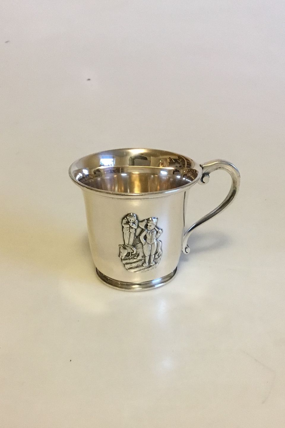 Cjild Cup os Silver with motif from "Little Claus and Big Claus" by HC Andersen. Measures 6.3 cm / 2 31/64 in. Weighs 92 g / 3.25 oz.