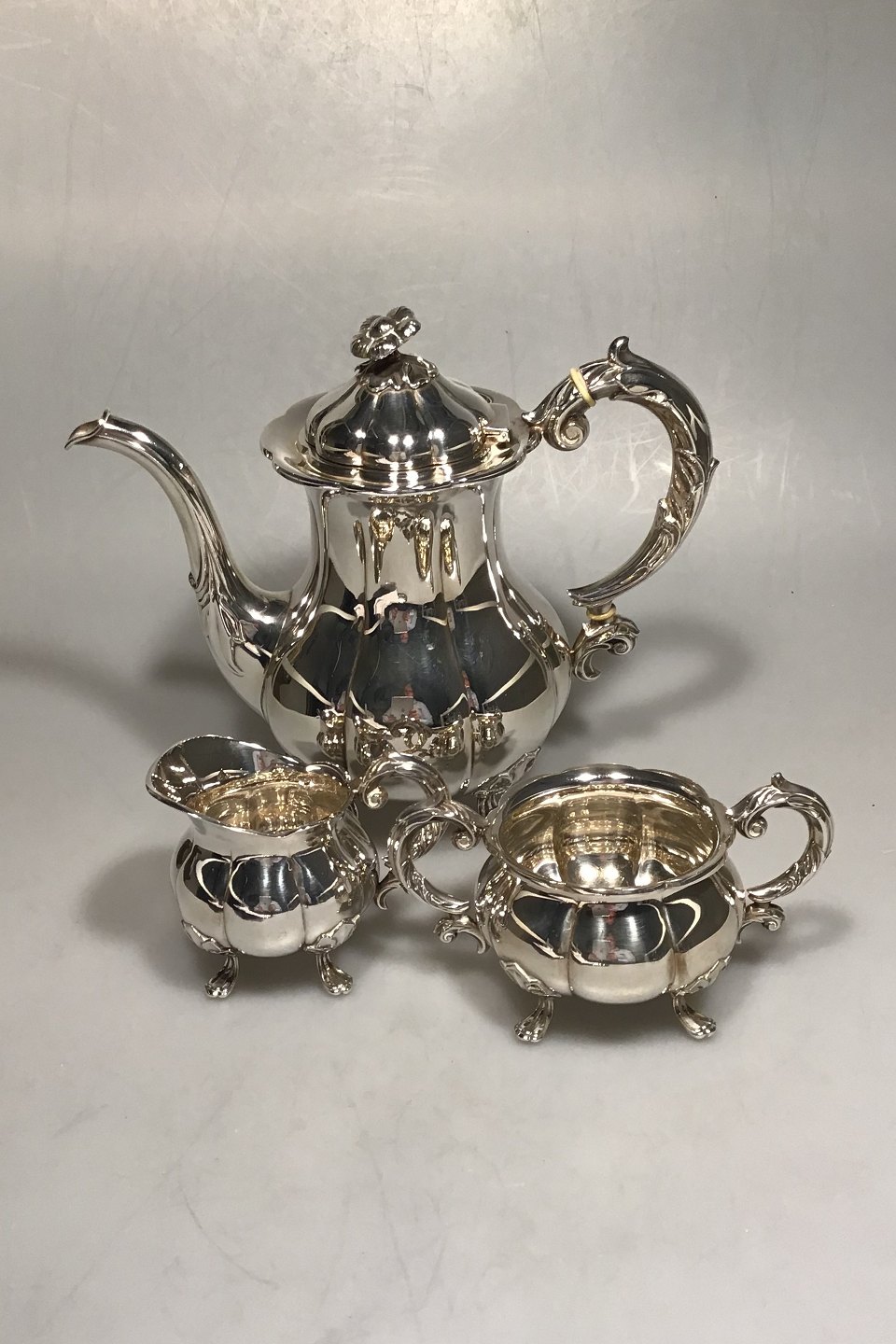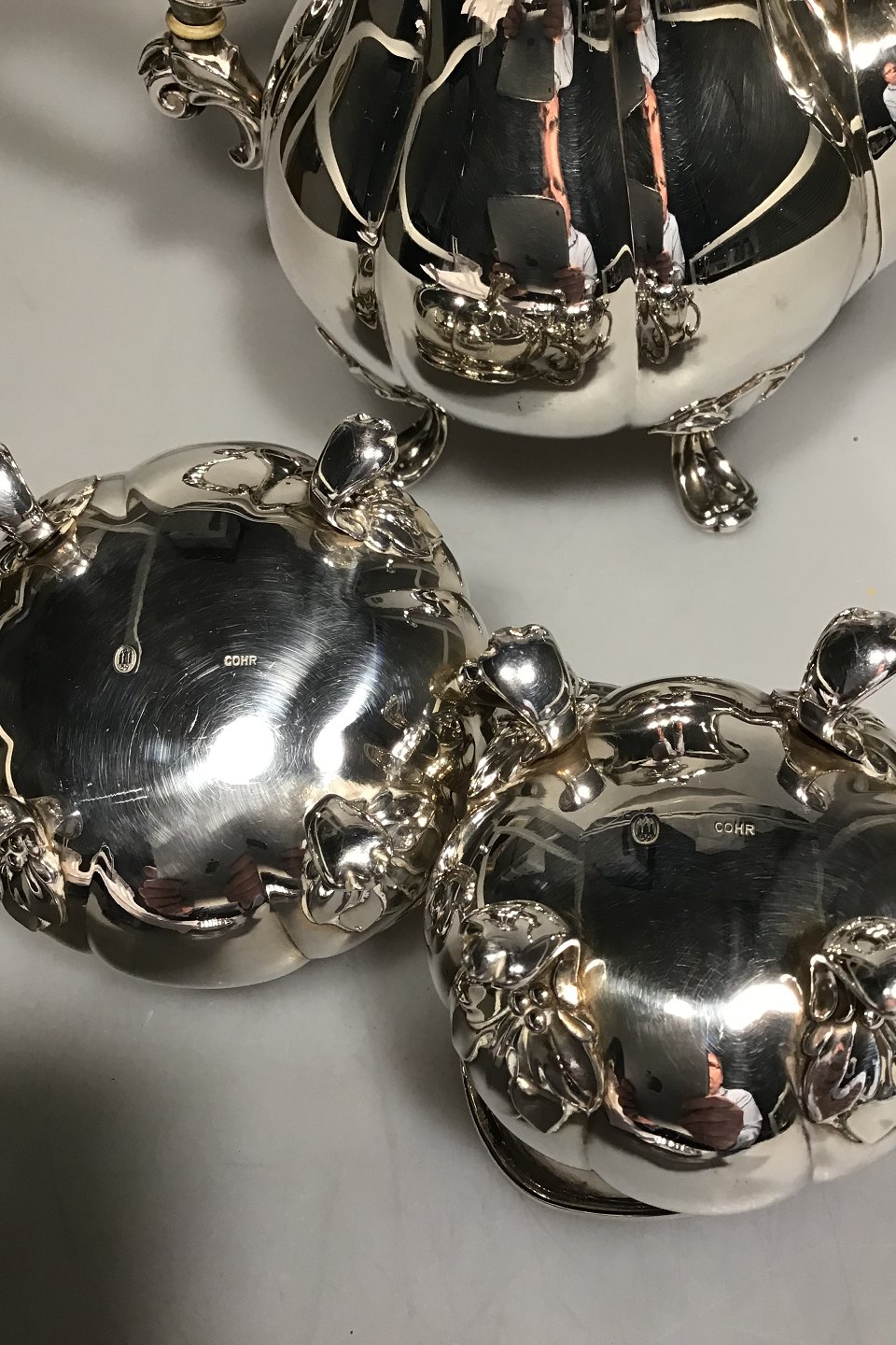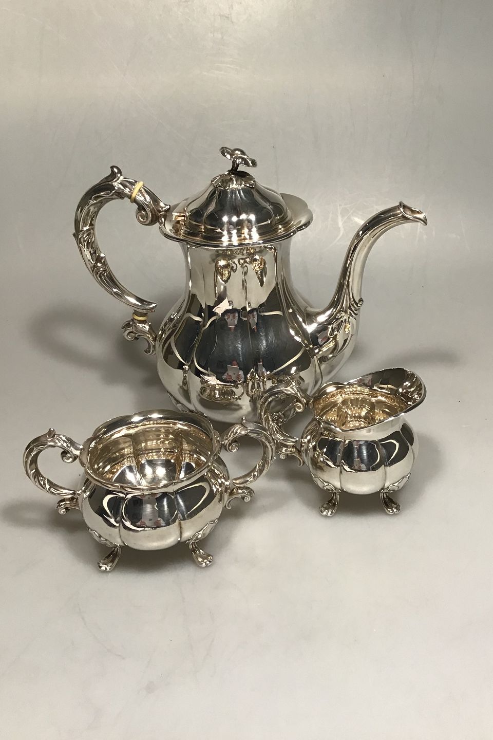Cohr Sølv Ligeknækket Kaffestel Kaffekande (H 22 cm Vægt 754gr )flødekande (H 9 cm Vægt 139gr )og sukkerskål (H 8.5 cm Vægt 188gr)