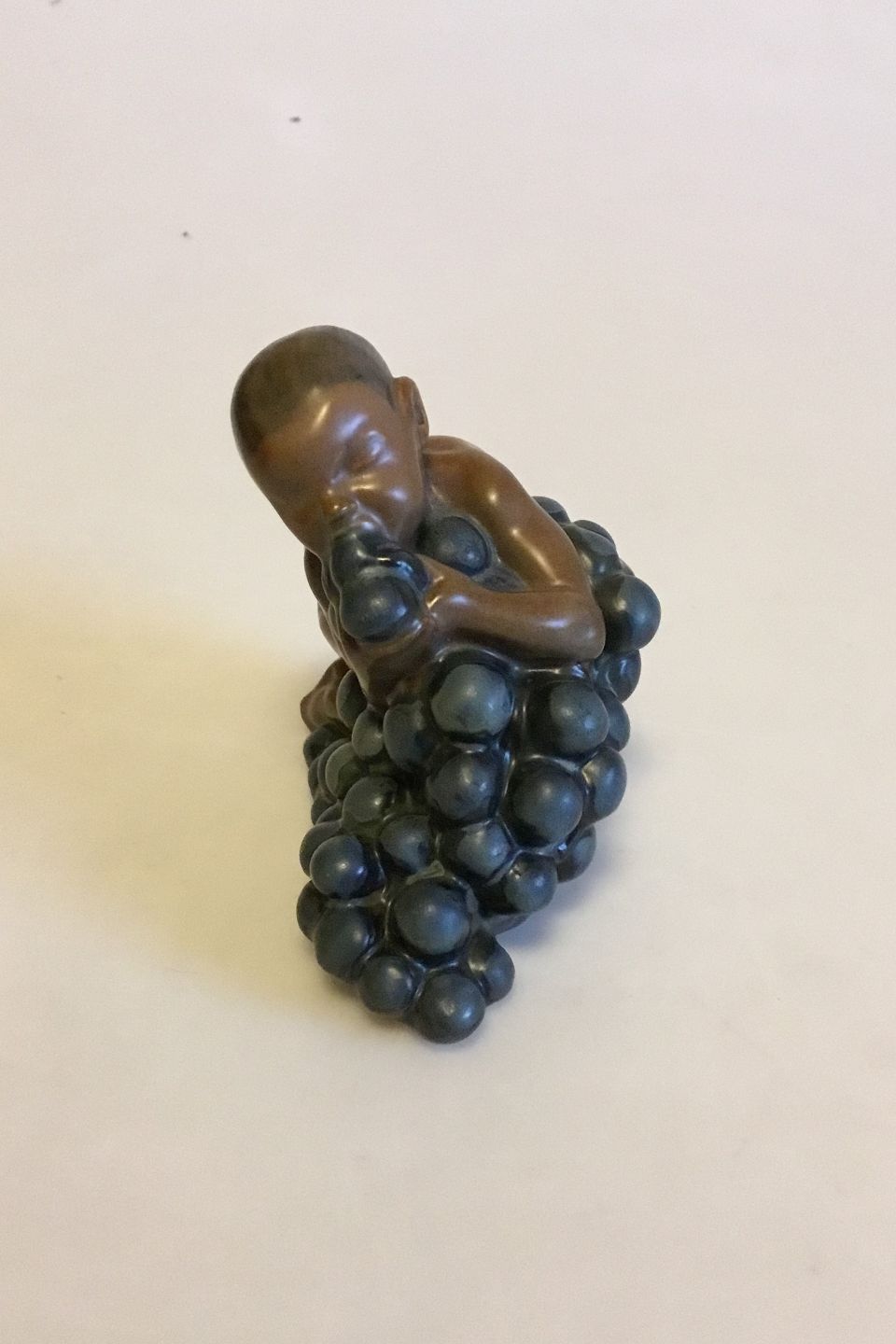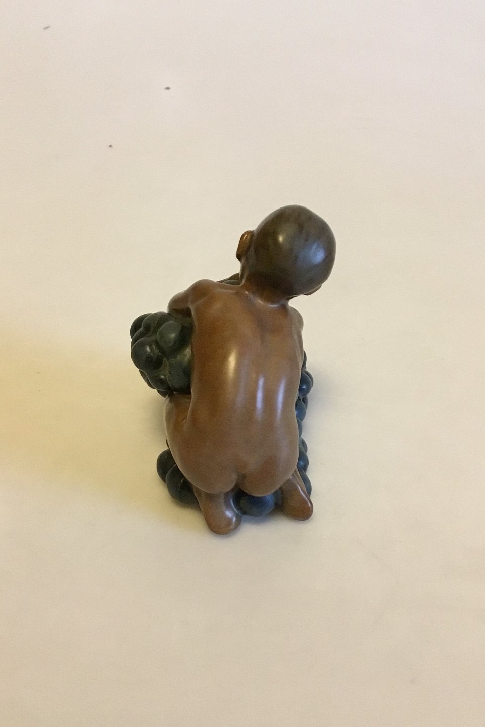 Bing & Grøndahl Figurine by Kai Nielsen "Little Bacchus with Grapes" No 4021 from The Grape Harvest Series. Designed in approx. 1915. Measures 9.5 cm / 3 47/64 in.