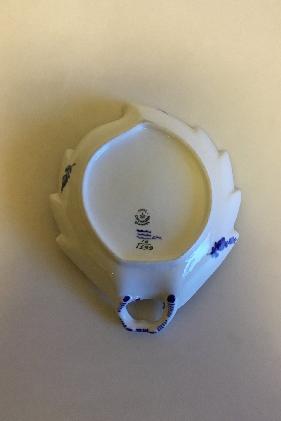 Royal Copenhagen Blå Blomst Svejfet Asiet No 1599. Måler 23 cm