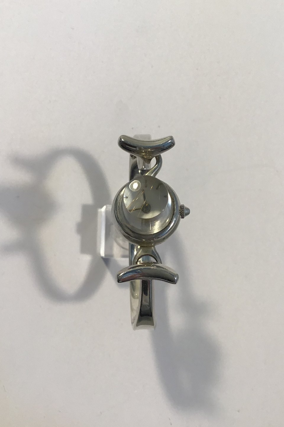 Georg Jensen Sterling Silver Bangle Watch with Rock Crystal Face No 231 Designed by Vivianna Torun Bülow-Hübe. Measures 5.6 cm / 2.20" diam. Weight 50.6 g / 1.78 oz.