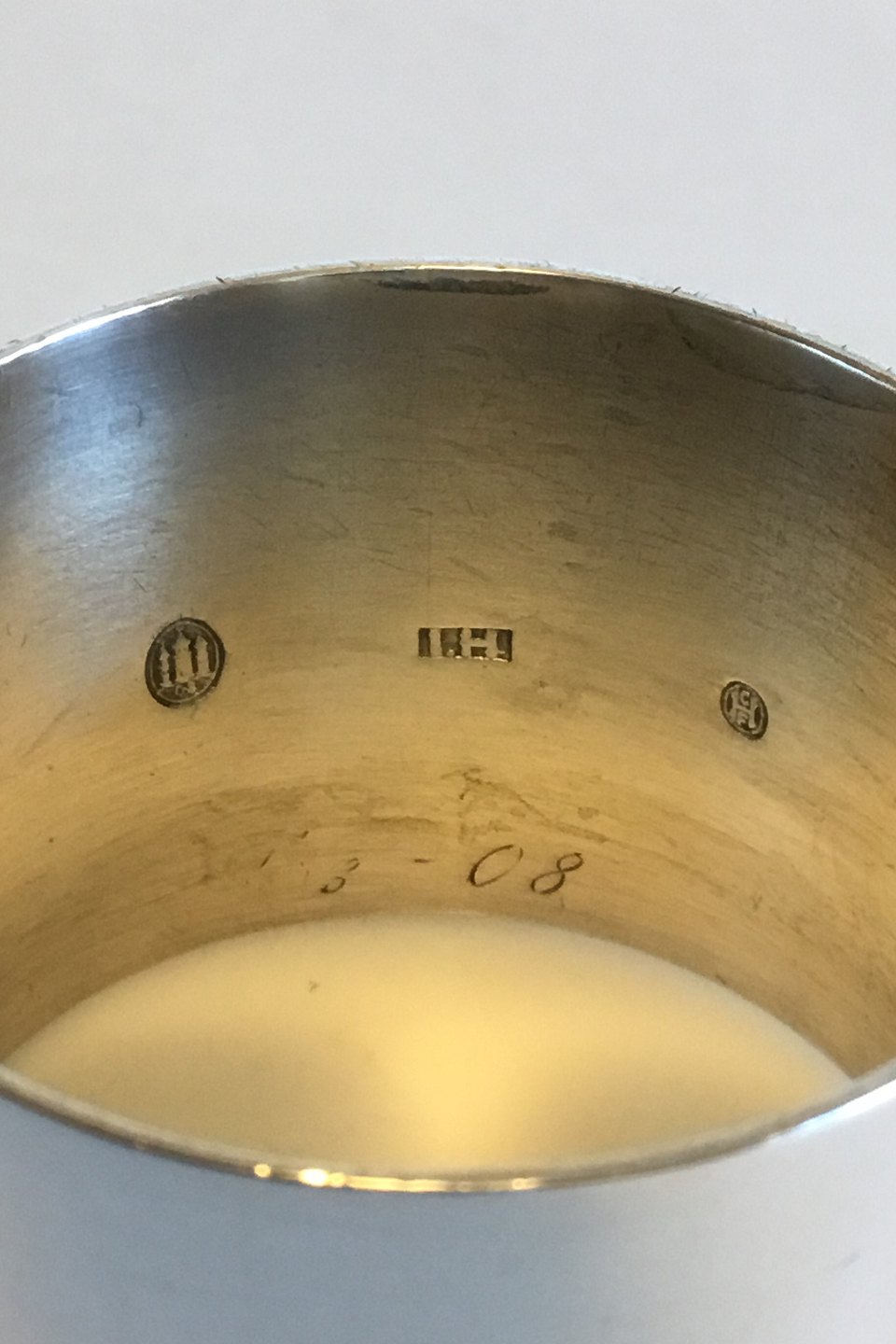 Silver Napkin Ring. Stamped I. Holm, Copenhagen 1908. Measures 3.2 cm / 1 17/64 in. x 4.2 cm / 1 21/32 in.