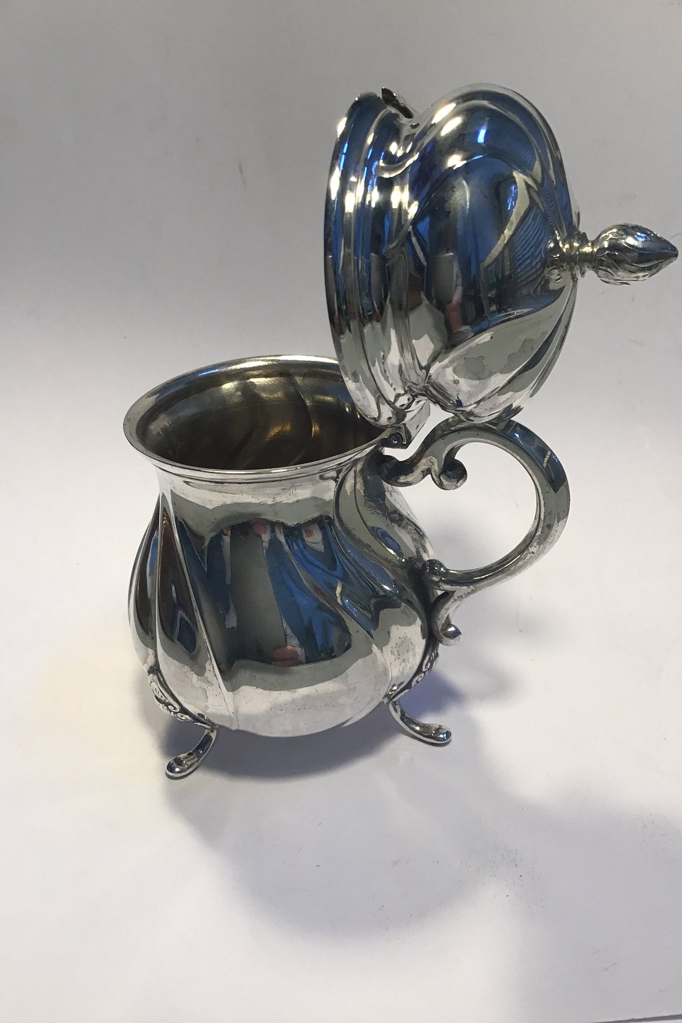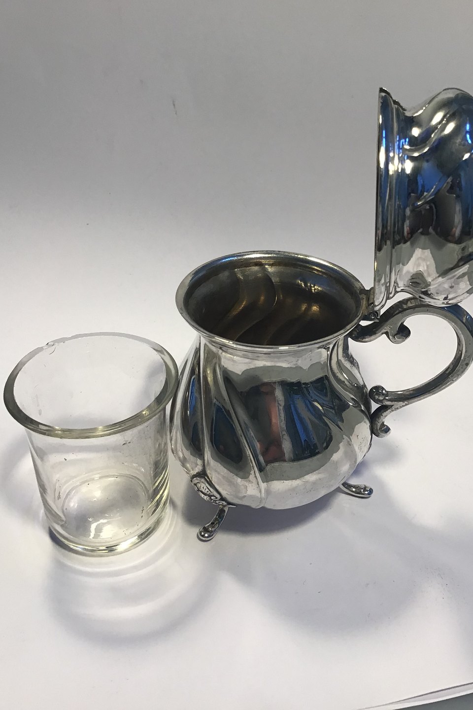 Silver Mustard Pot with lid and glass lining H 11 cm/4.33" Combined weight 146.7 gr/5.17 oz Glass lining with small chip