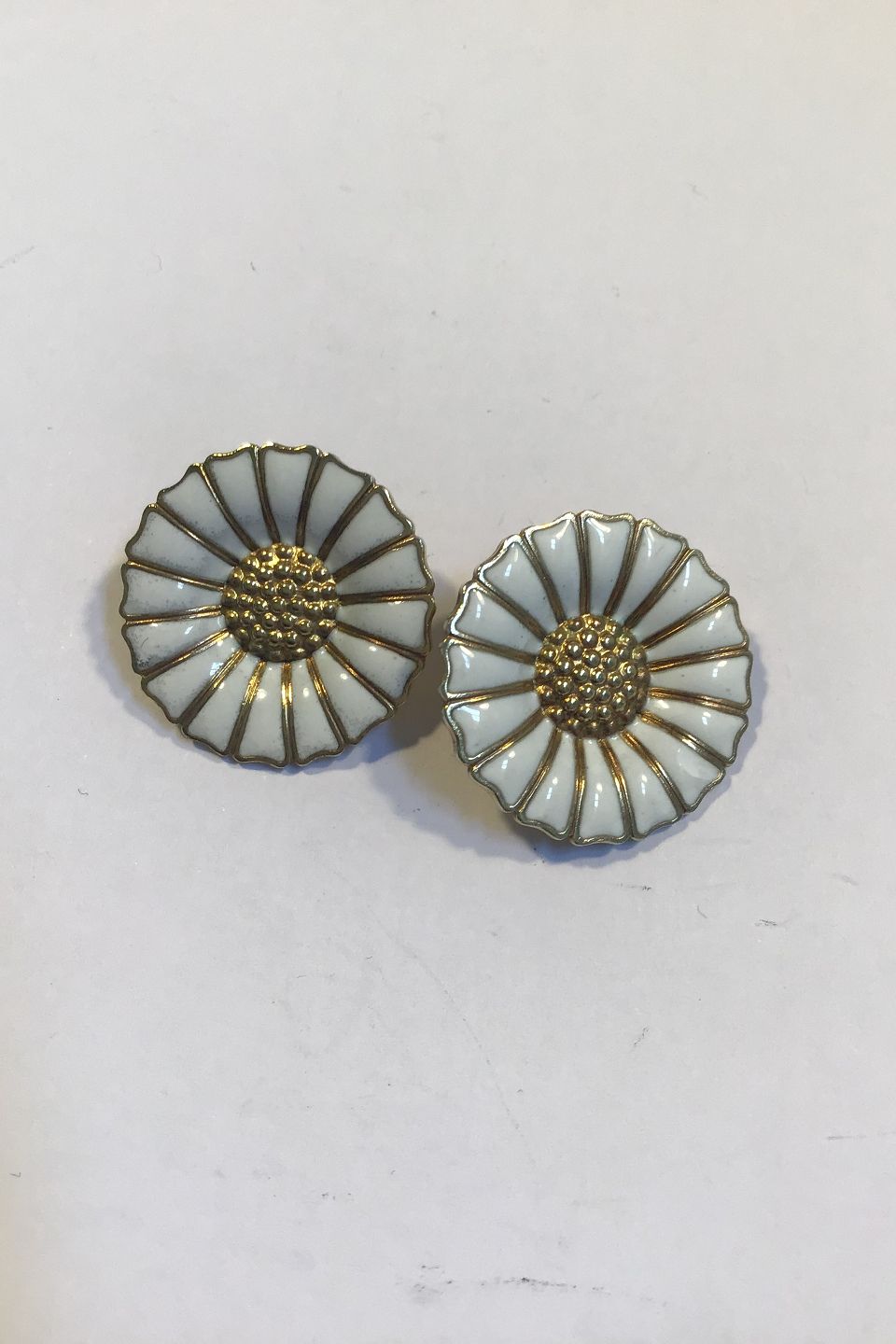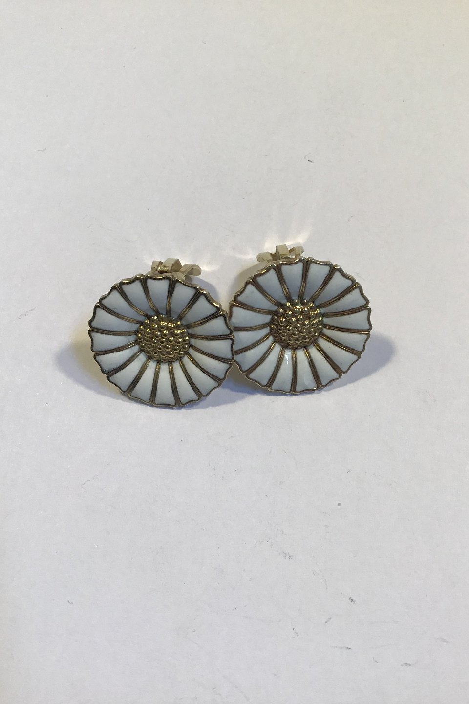 Georg Jensen Forgyldt Sterling Sølv Øreclips Diam 2.4 cm Vægt 12.5 gr OBS Emalje afslag på et kronblad