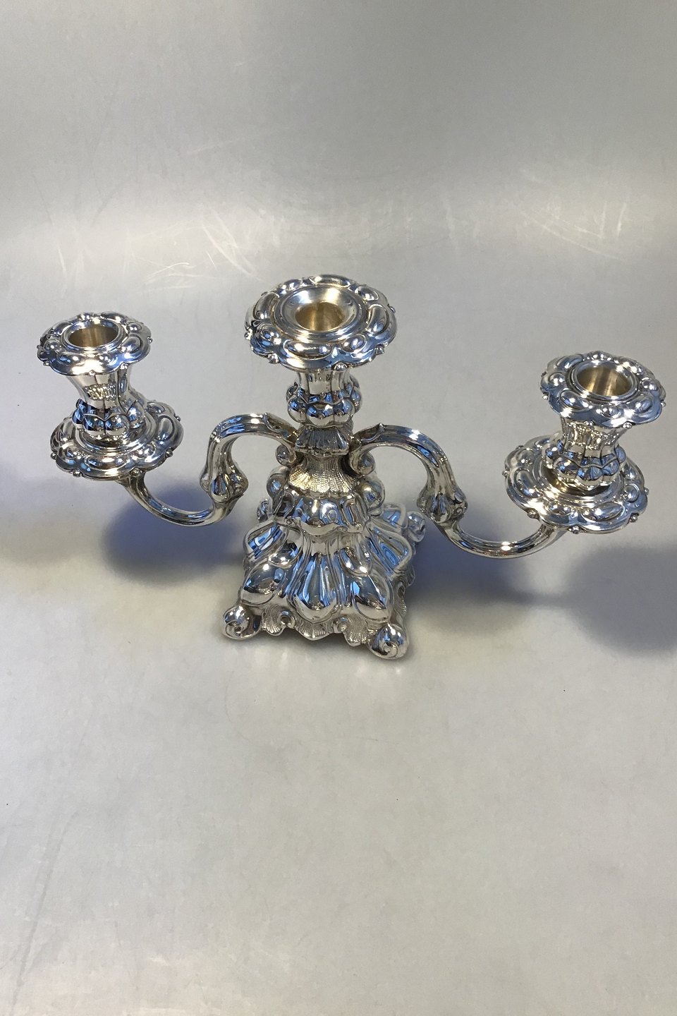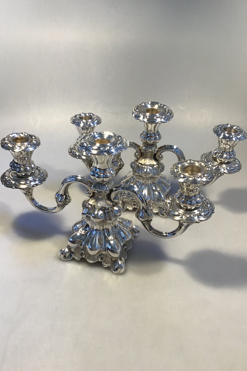 Par 3-armede Lysestager Sterling Sølv H 18 cm B 32 cm D 11 cm Samlet vægt inkl udfyldt base 1427 gr