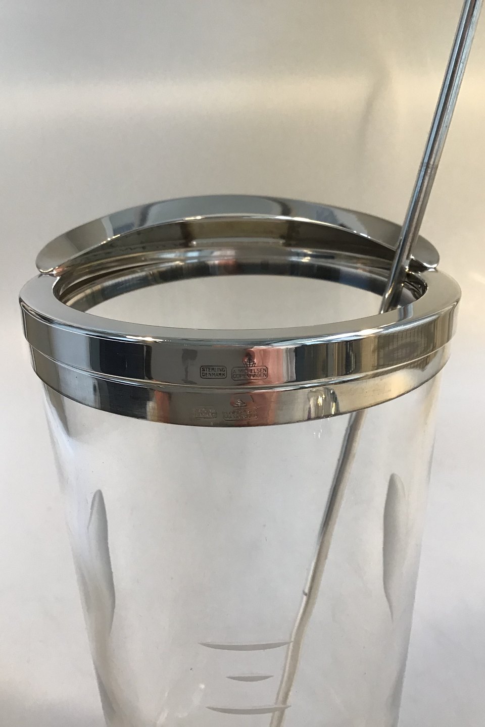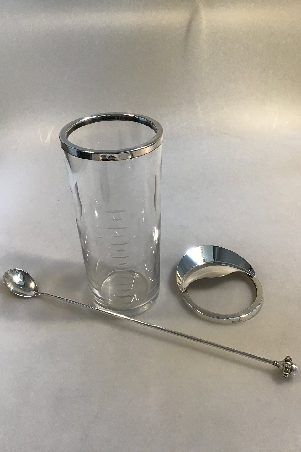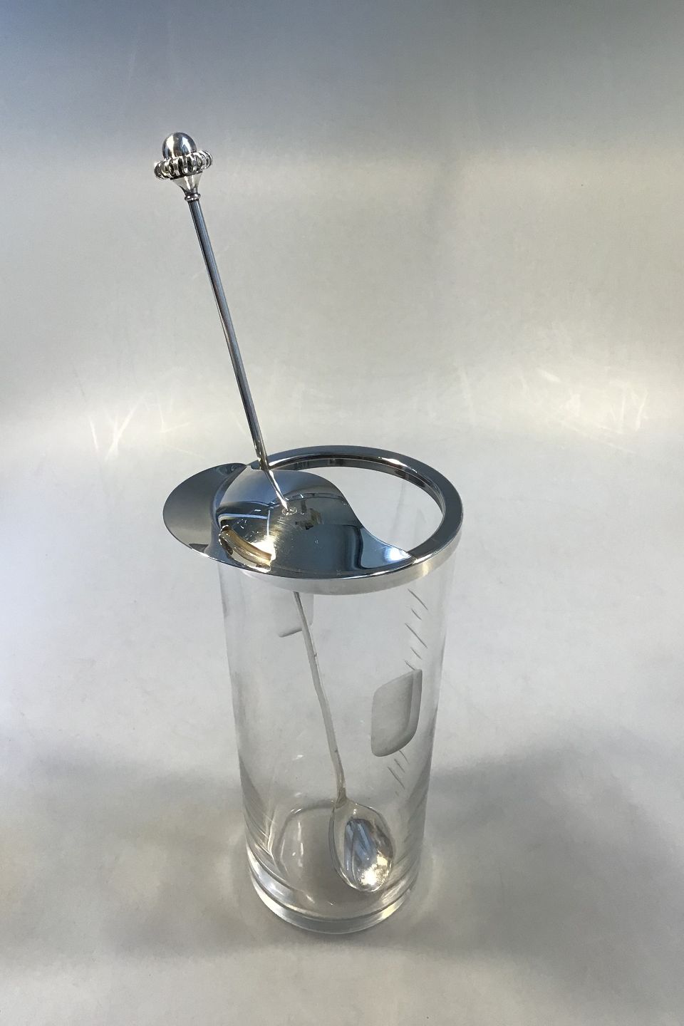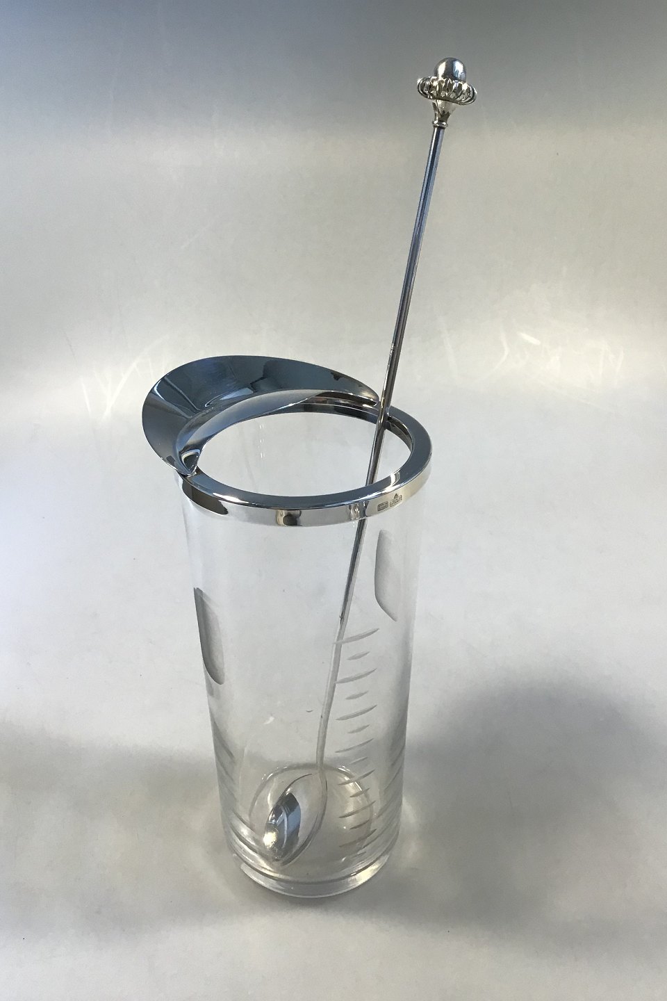 A Michelsen Sterling Silver mounted Cocktail Glass Pitcher and Mixing Spoon. Pitcher and Spoon with measurement indications. Picher 22 cm/8.66" Spoon 34 cm/13.38"